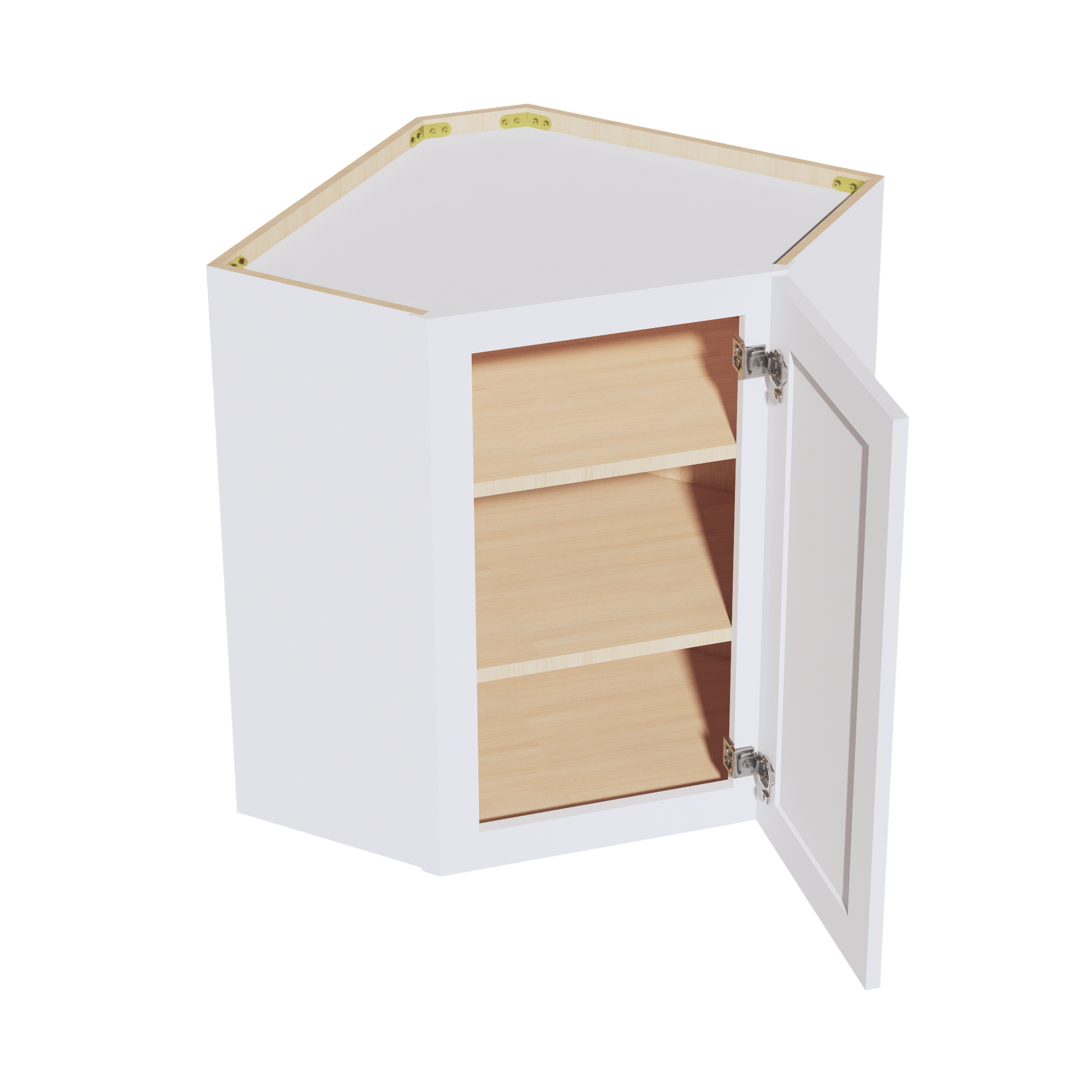 HF-WDC2430: Frost White Shaker 24″W x 30″H 1 Door & 2 Shelves Diagonal Wall Corner Cabinet