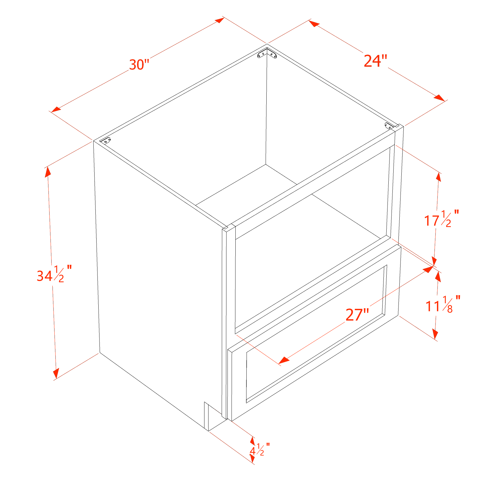 HLG-BMC30: Light Gray Shaker 30″ 1 Drawer Base Built-in Microwave Cabinets