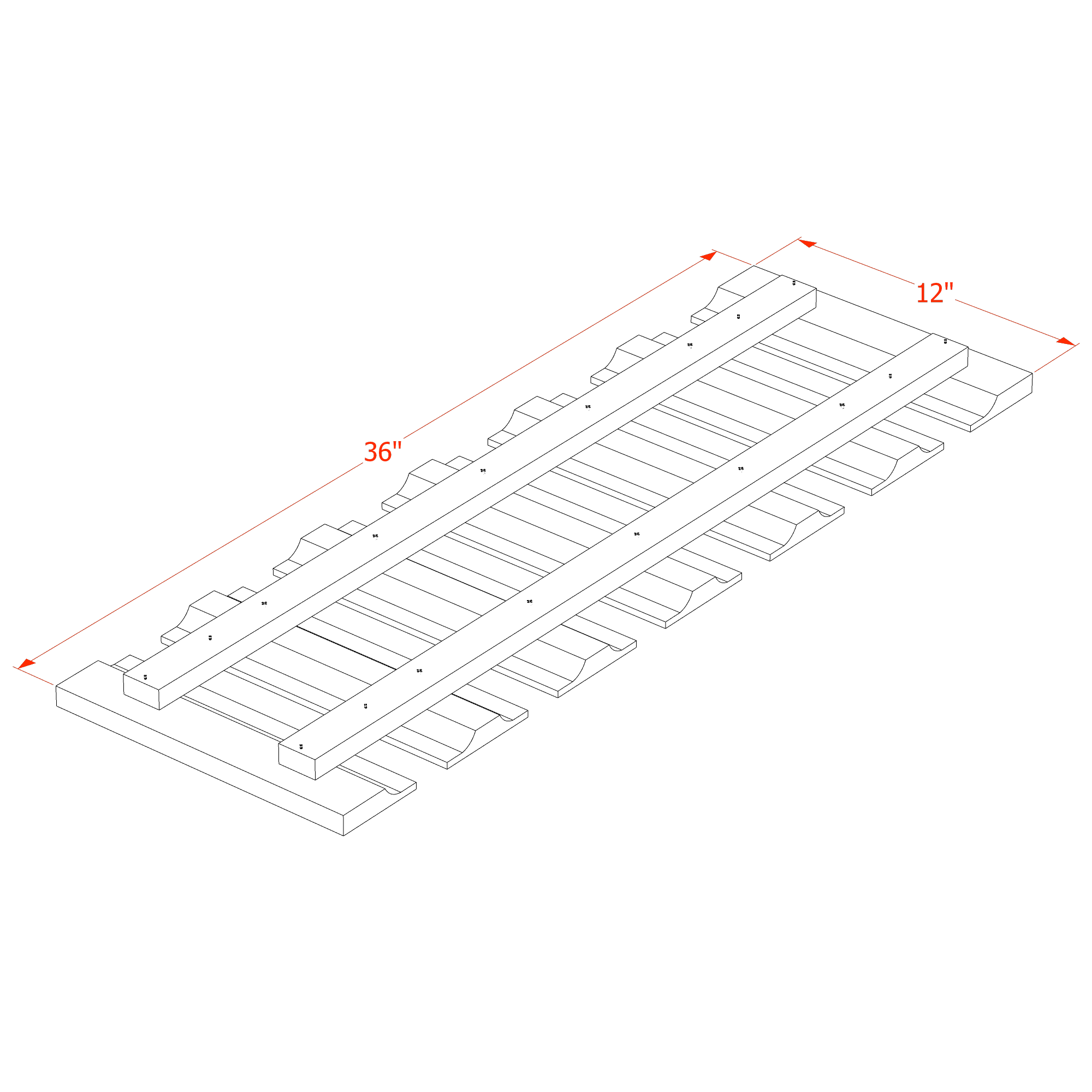 36″W x 1-1/2″H x 12″D