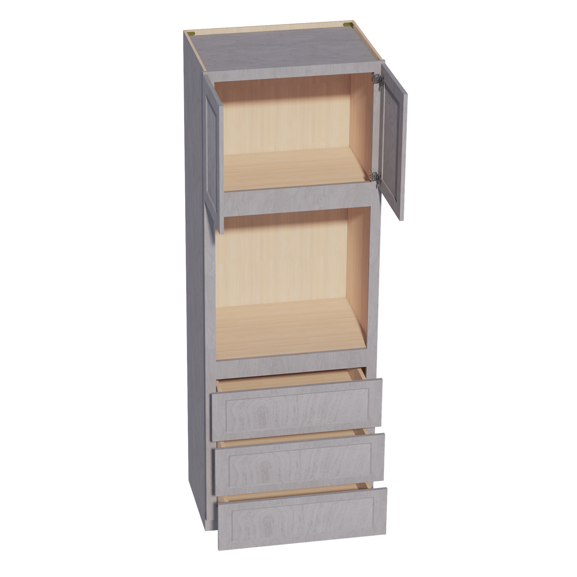 HLG-OC3396: Light Gray Shaker 33″W x 96″H x 24″D 2 Doors & 3 Drawers Tall Oven Shelf Cabinets