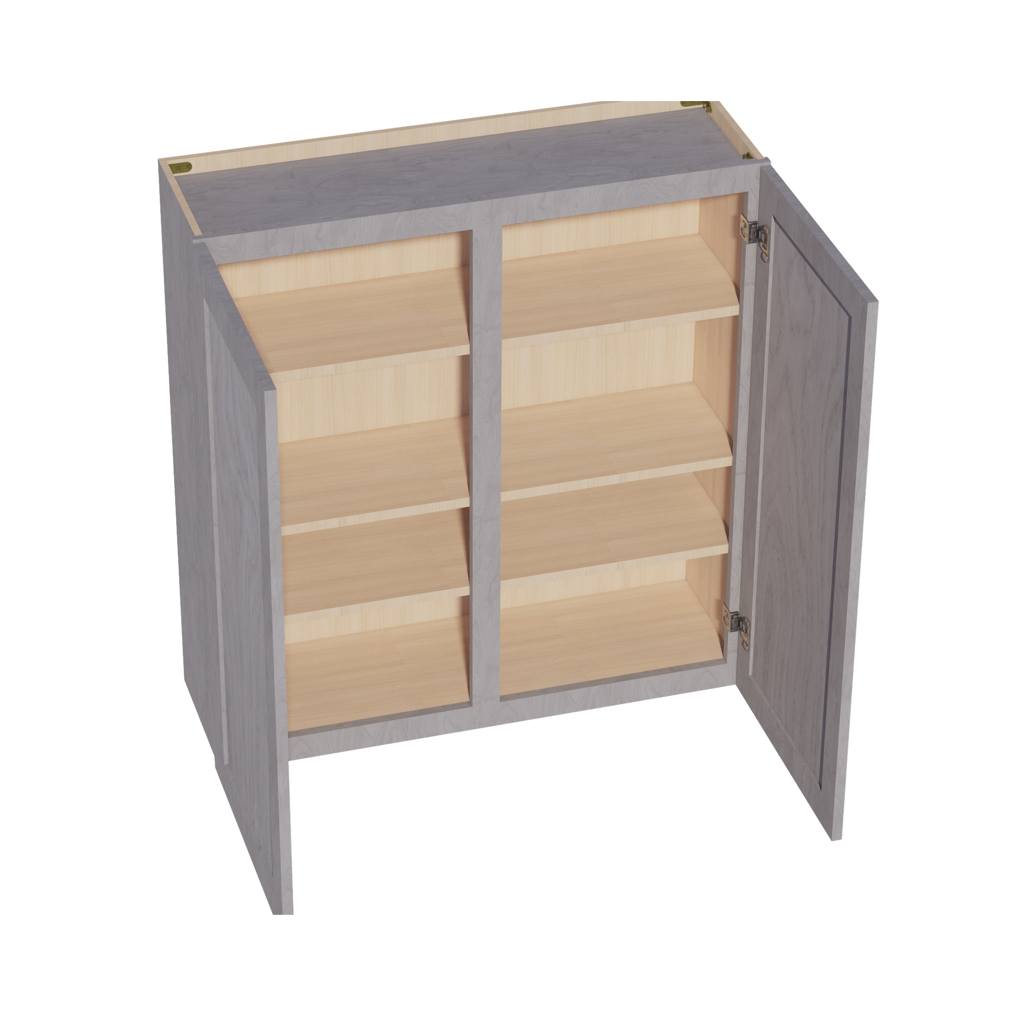HLG-W3942: Light Gray Shaker 39″W x 42″H 2 Doors & 3 Shelves Standard Wall Cabinet