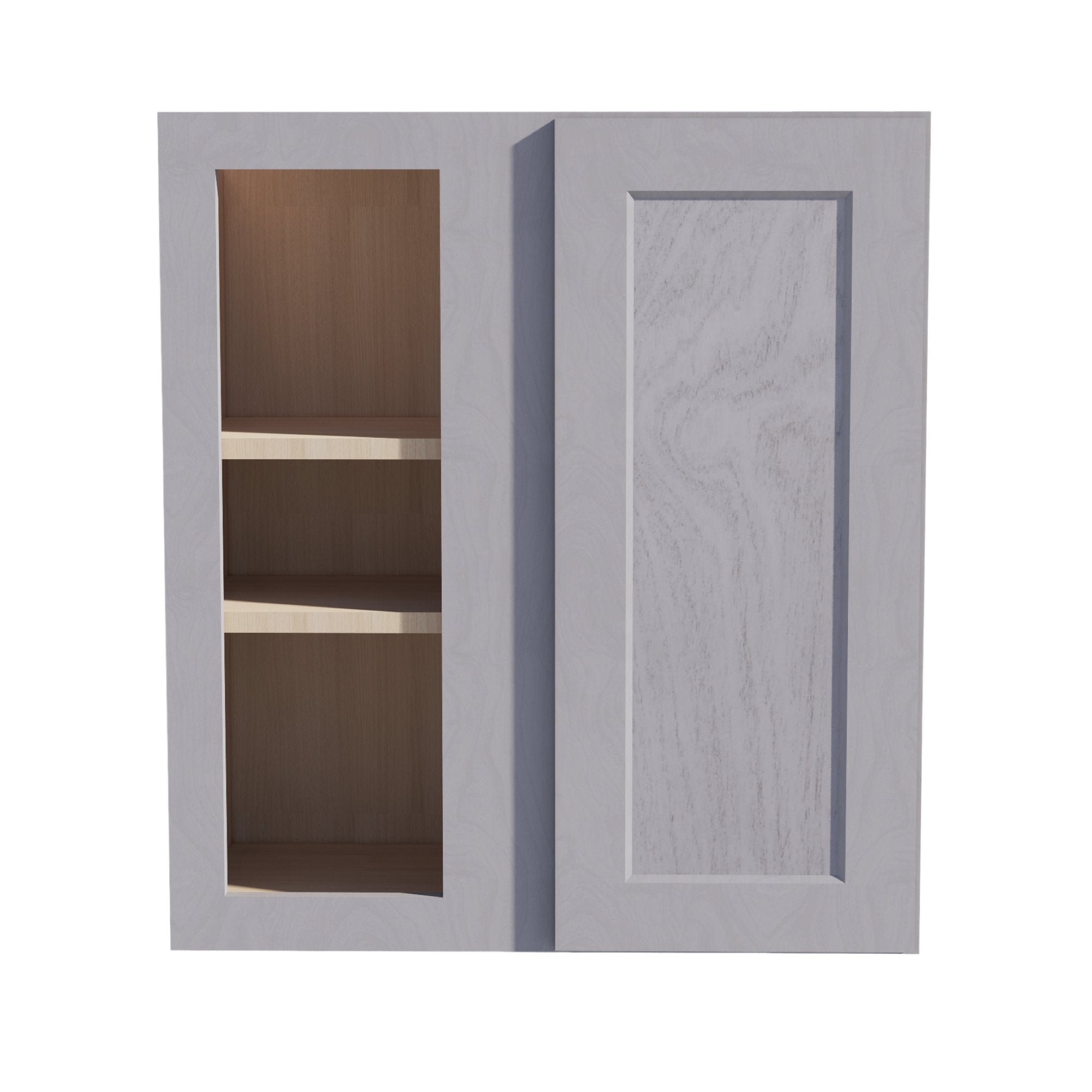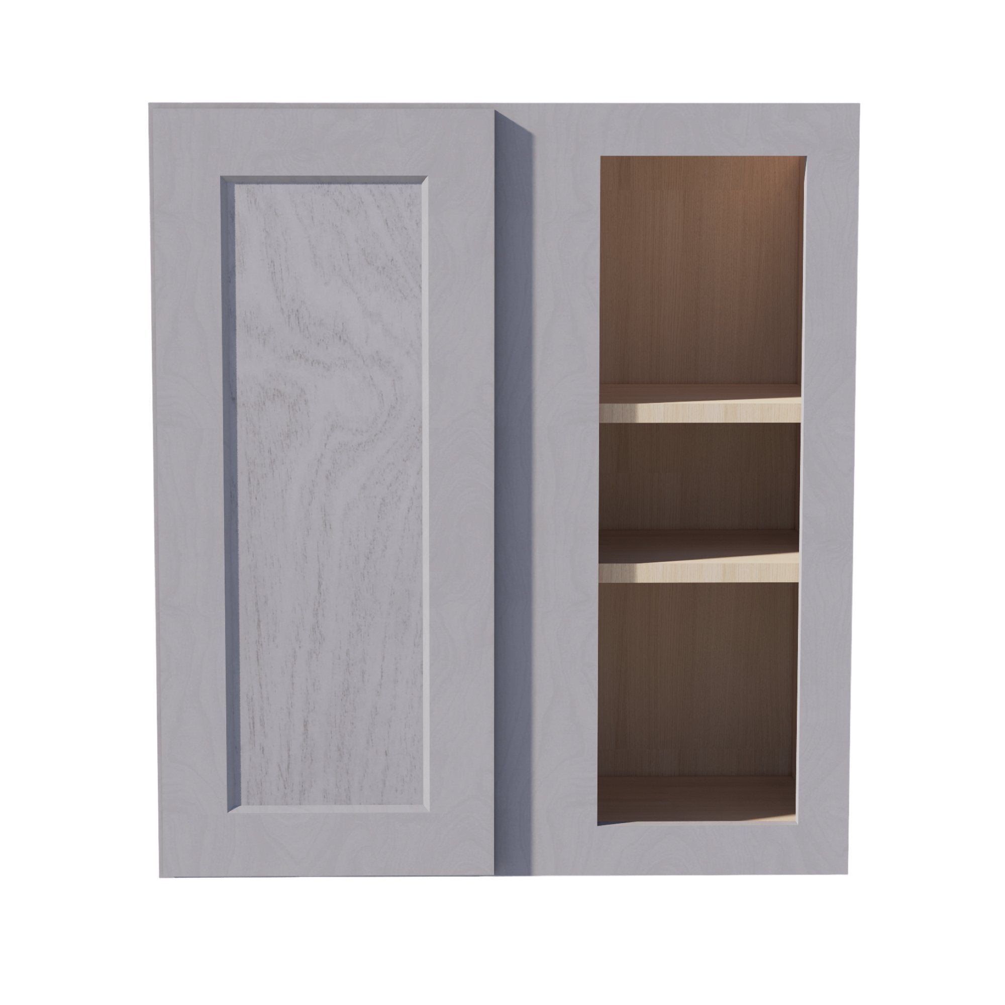 HLG-WBC2730: Light Gray Shaker 27″W x 30″H 1 Door & 2 Shelves Wall Blind Corner Cabinets