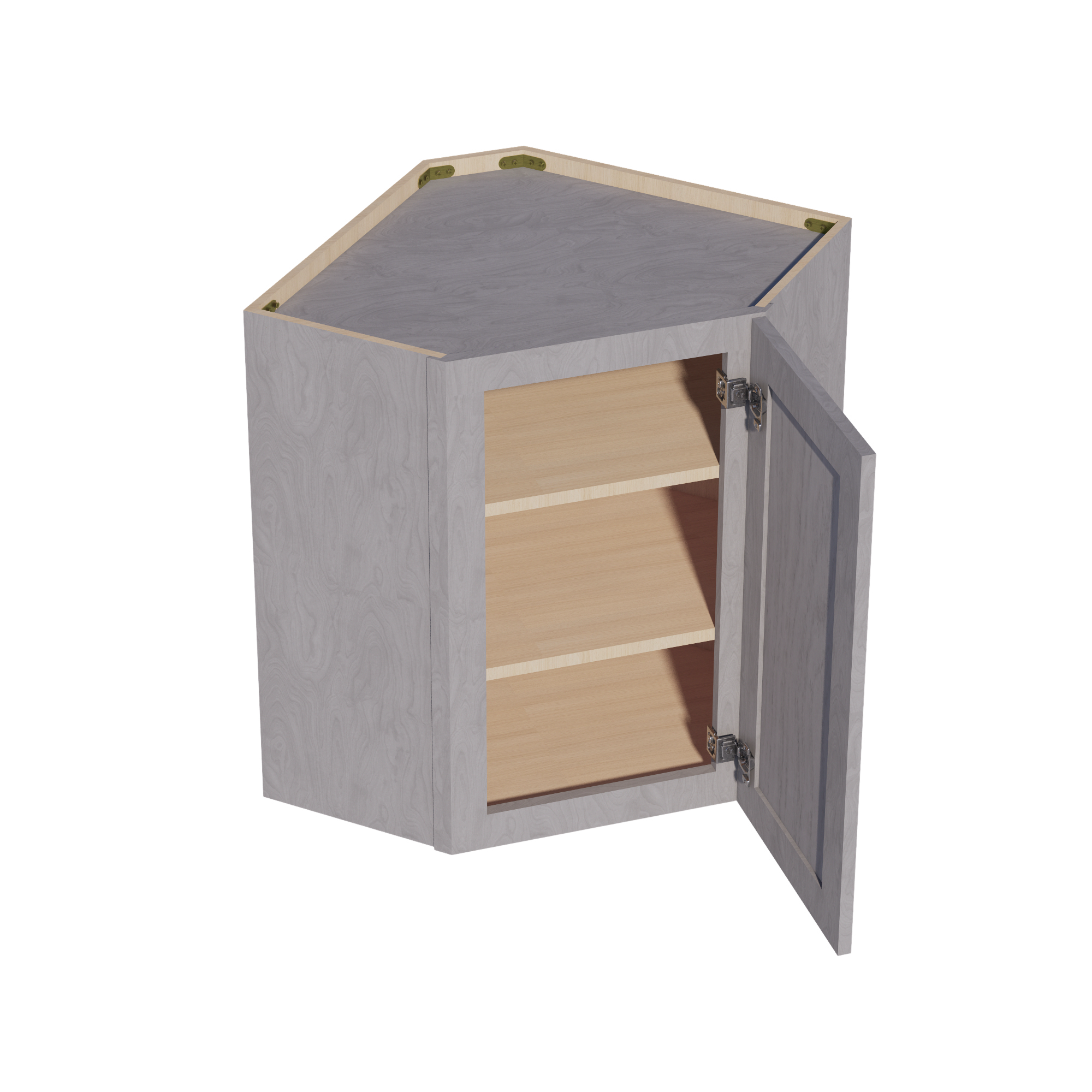 HLG-WDC2430: Light Gray Shaker 24″W x 30″H 1 Door & 2 Shelves Diagonal Wall Corner Cabinet
