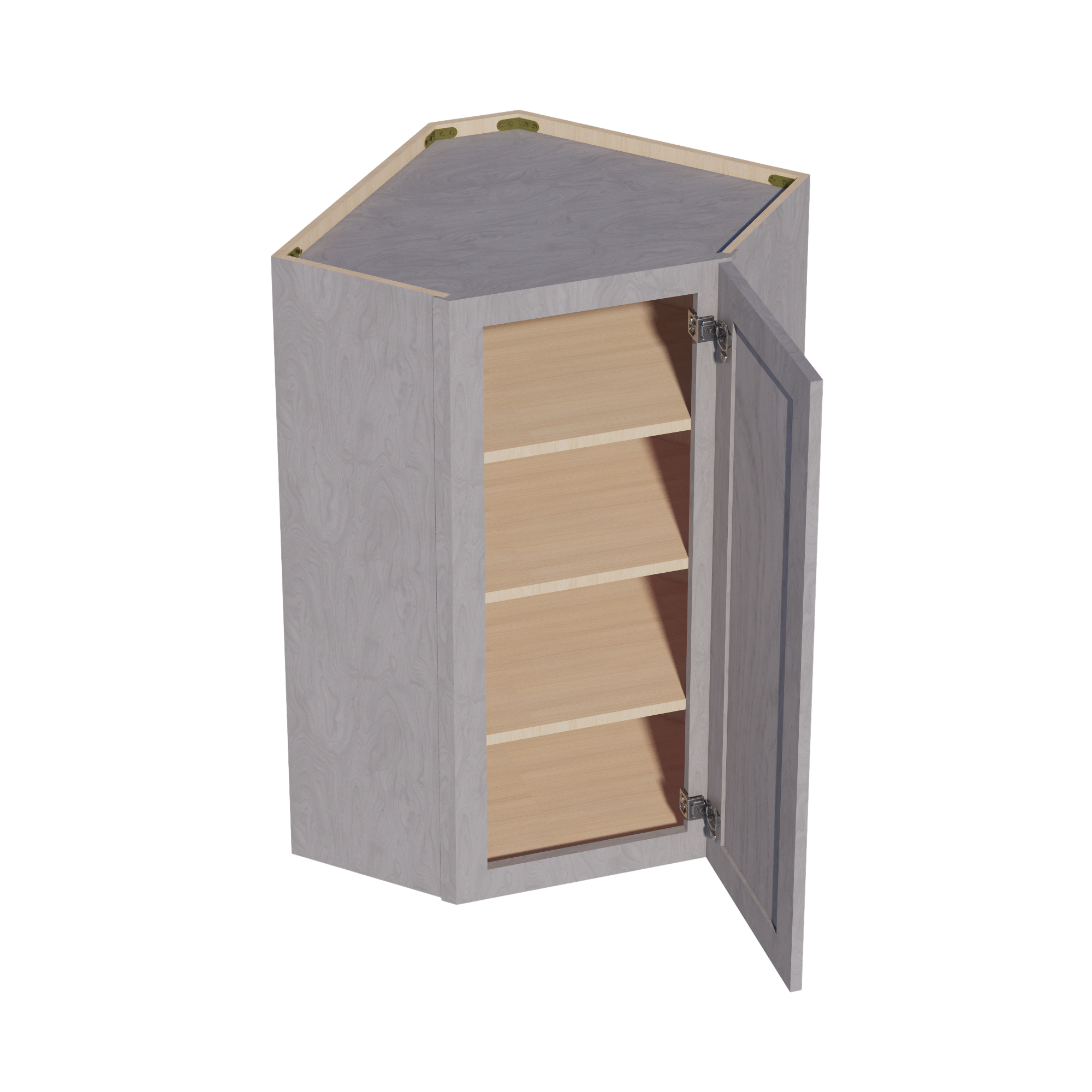 HLG-WDC2442: Light Gray Shaker 24″W x 42″H 1 Door & 2 Shelves Diagonal Wall Corner Cabinet