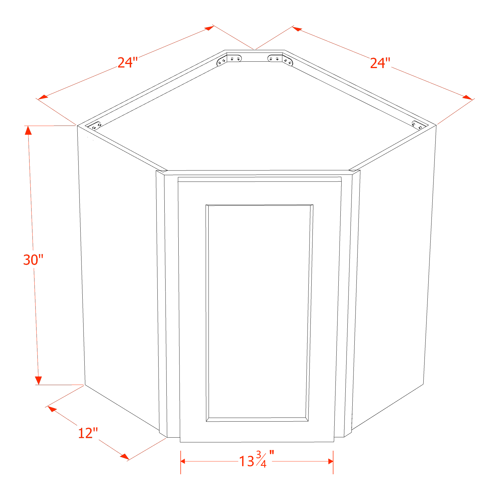 HT-WDC2430: Timber Wood Shaker 24″W x 30″H 1 Door & 2 Shelves Diagonal Wall Corner Cabinet