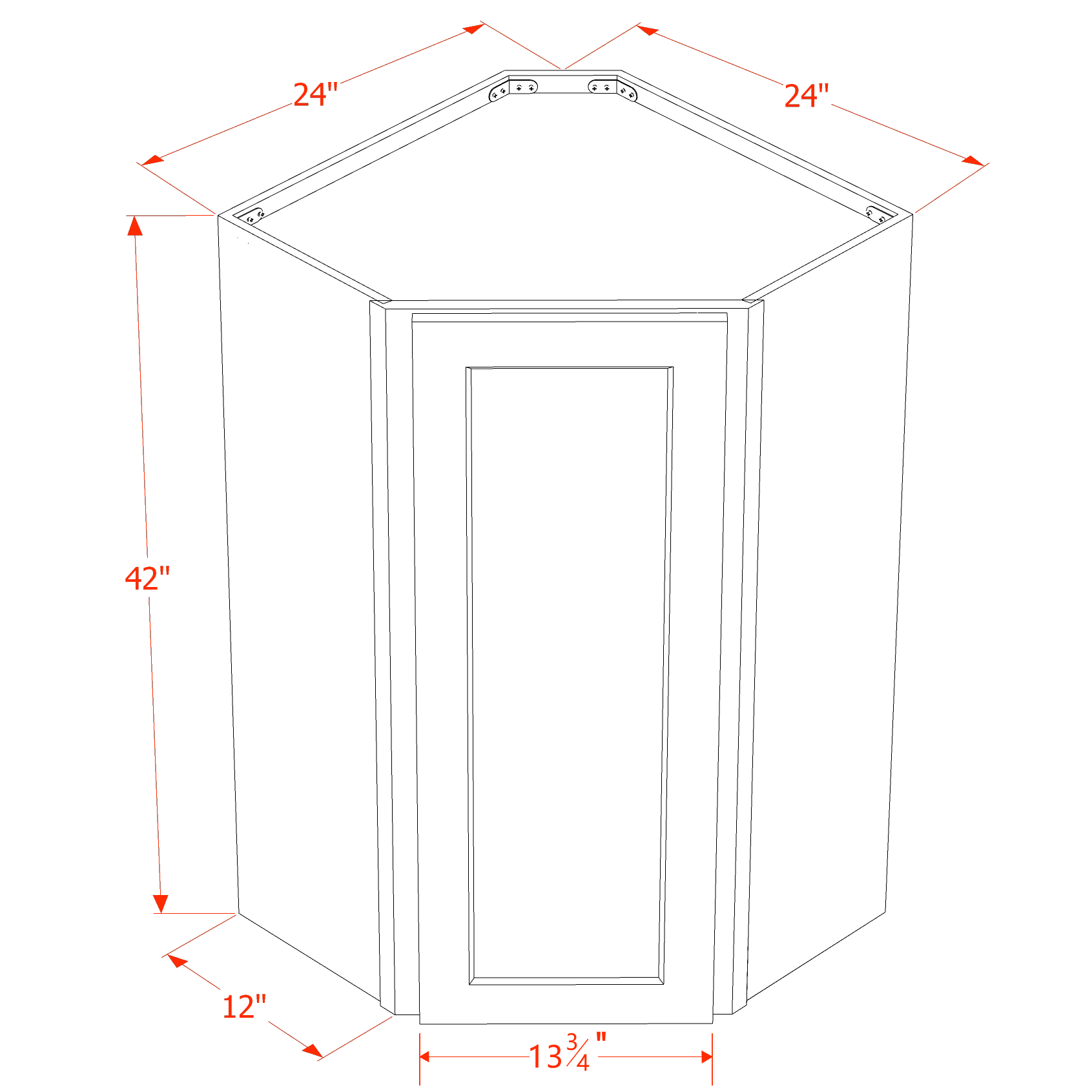HT-WDC2442: Timber Wood Shaker 24″W x 42″H 1 Door & 2 Shelves Diagonal Wall Corner Cabinet