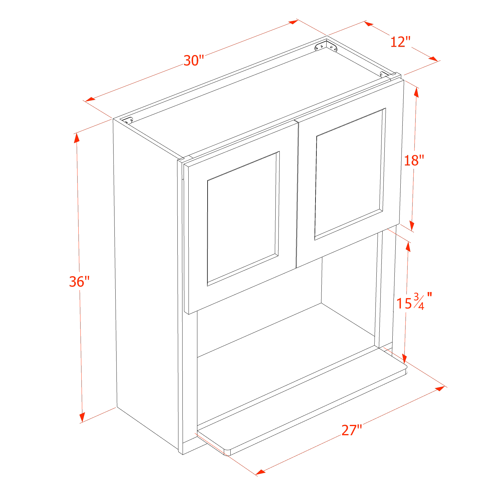 HT-WM3036: Timber Wood Shaker 30″W x 36″H 2 Doors Wall Built-in Microwave Cabinets