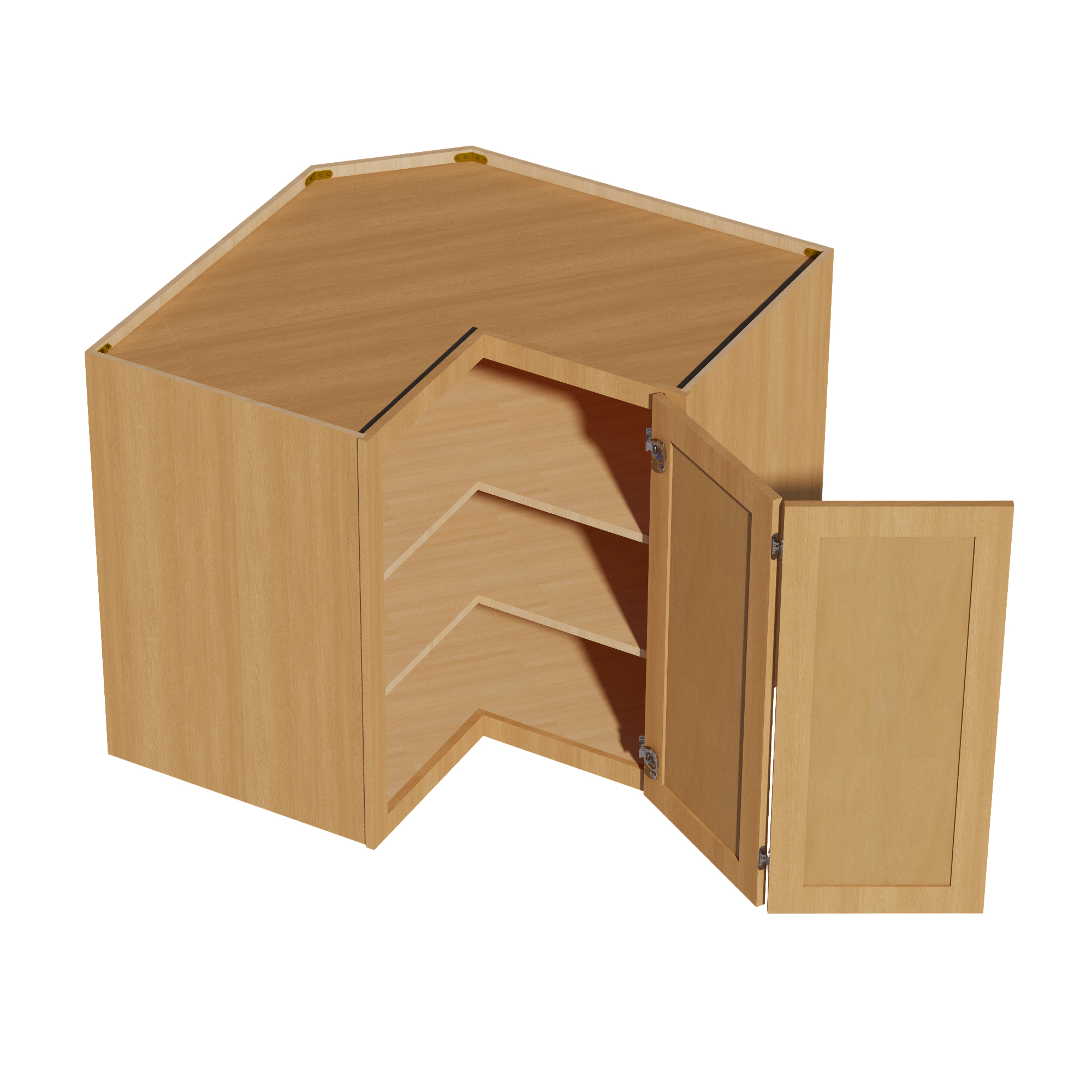 HT-WPC2436: Timber Wood Shaker 24″W x 36″H 1 Door & 2 Shelves Pie Cut Wall Corner Cabinet