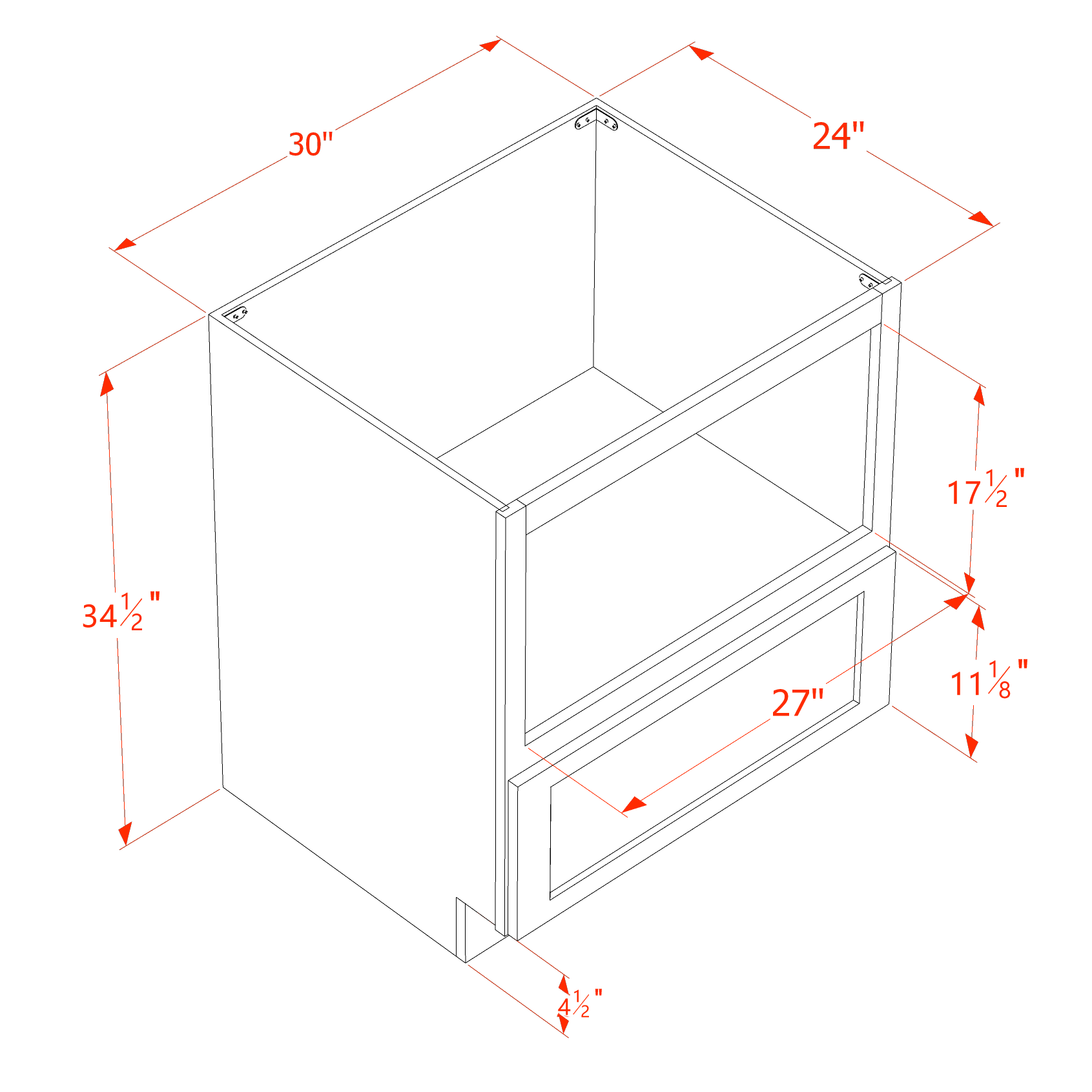 SF-BMC30: Frost White Slim Shaker 30″ 1 Drawer Base Built-in Microwave Cabinets