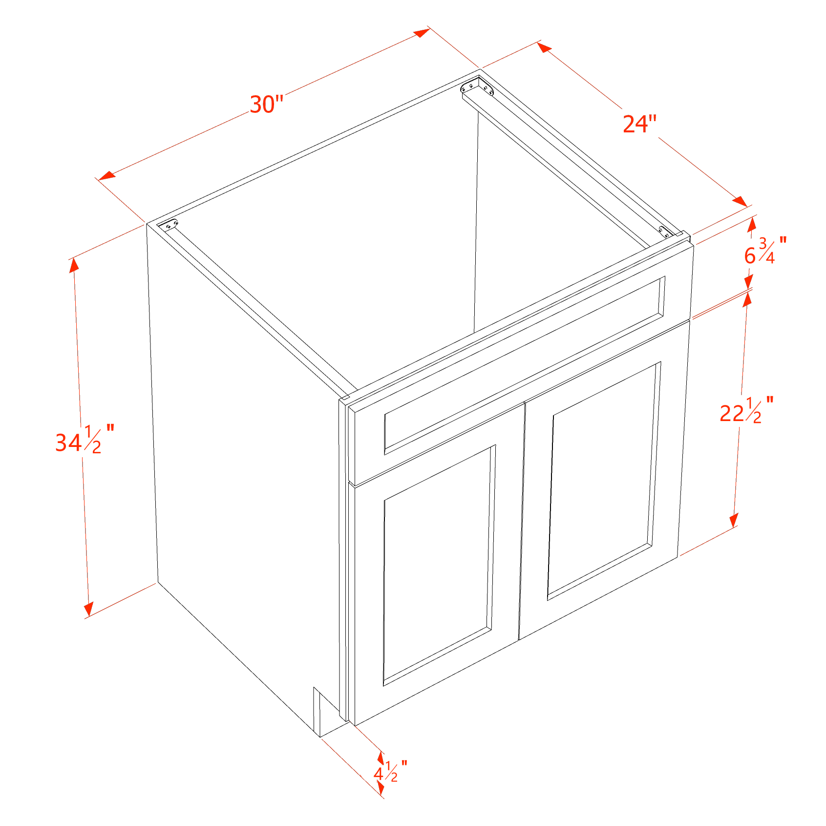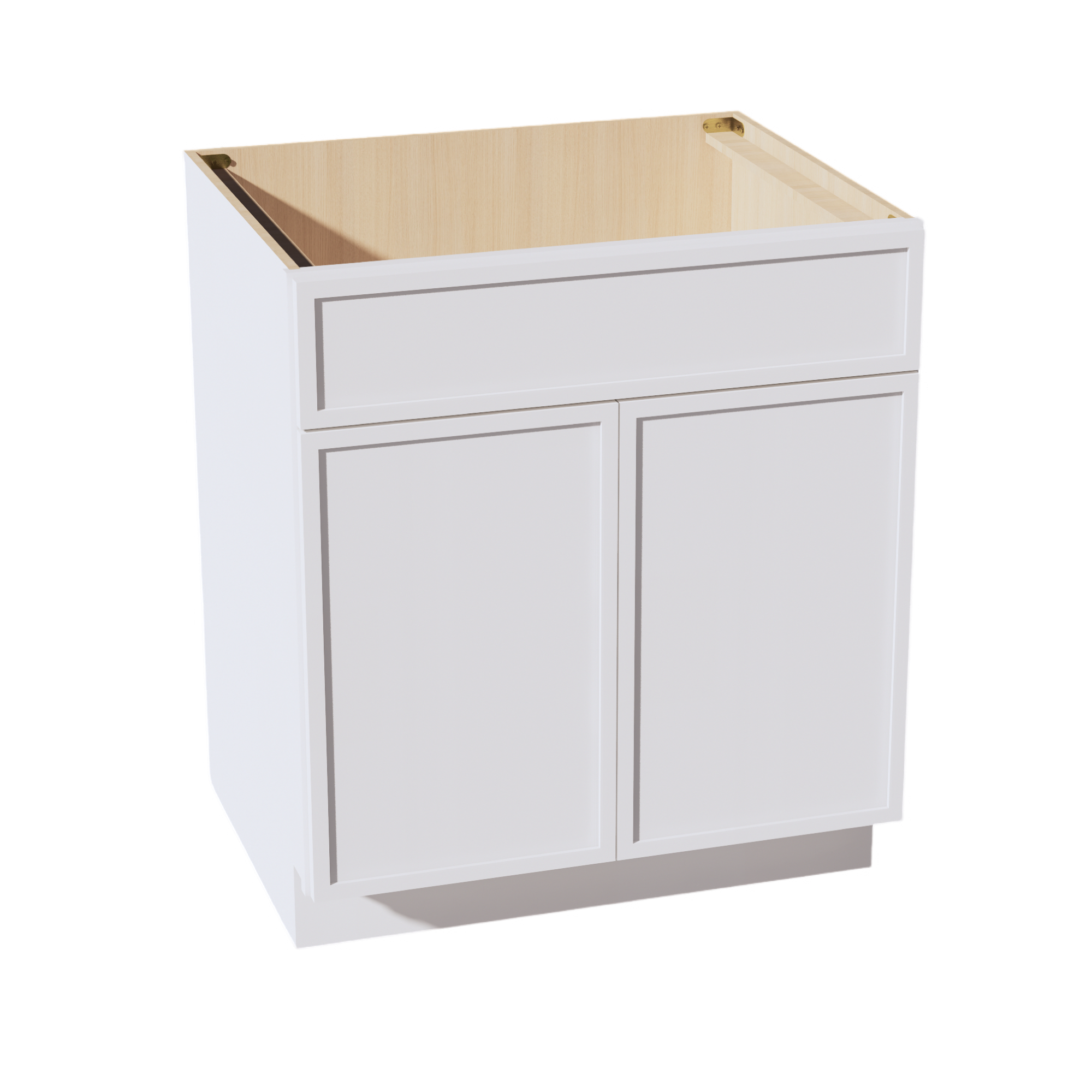 SF-SB30: Frost White Slim Shaker 30″ 2 Doors 1 False Drawer Sink Base Cabinet