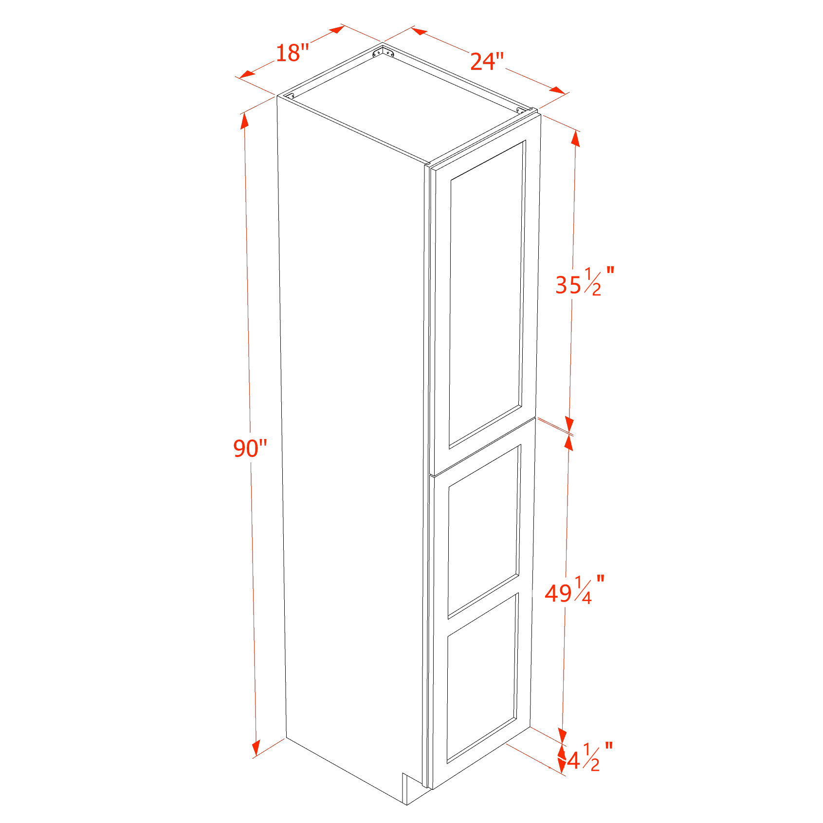 18″W x 90″H x 24″D