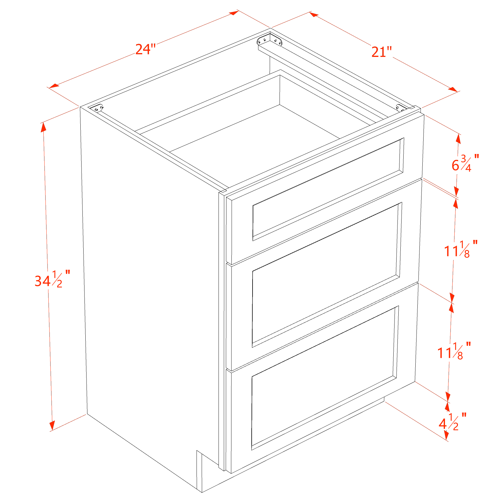 SF-VDB2421: Frost White Slim Shaker 24″W x 34-1/2″H x 21″D 3 Drawers Vanity Base Cabinets