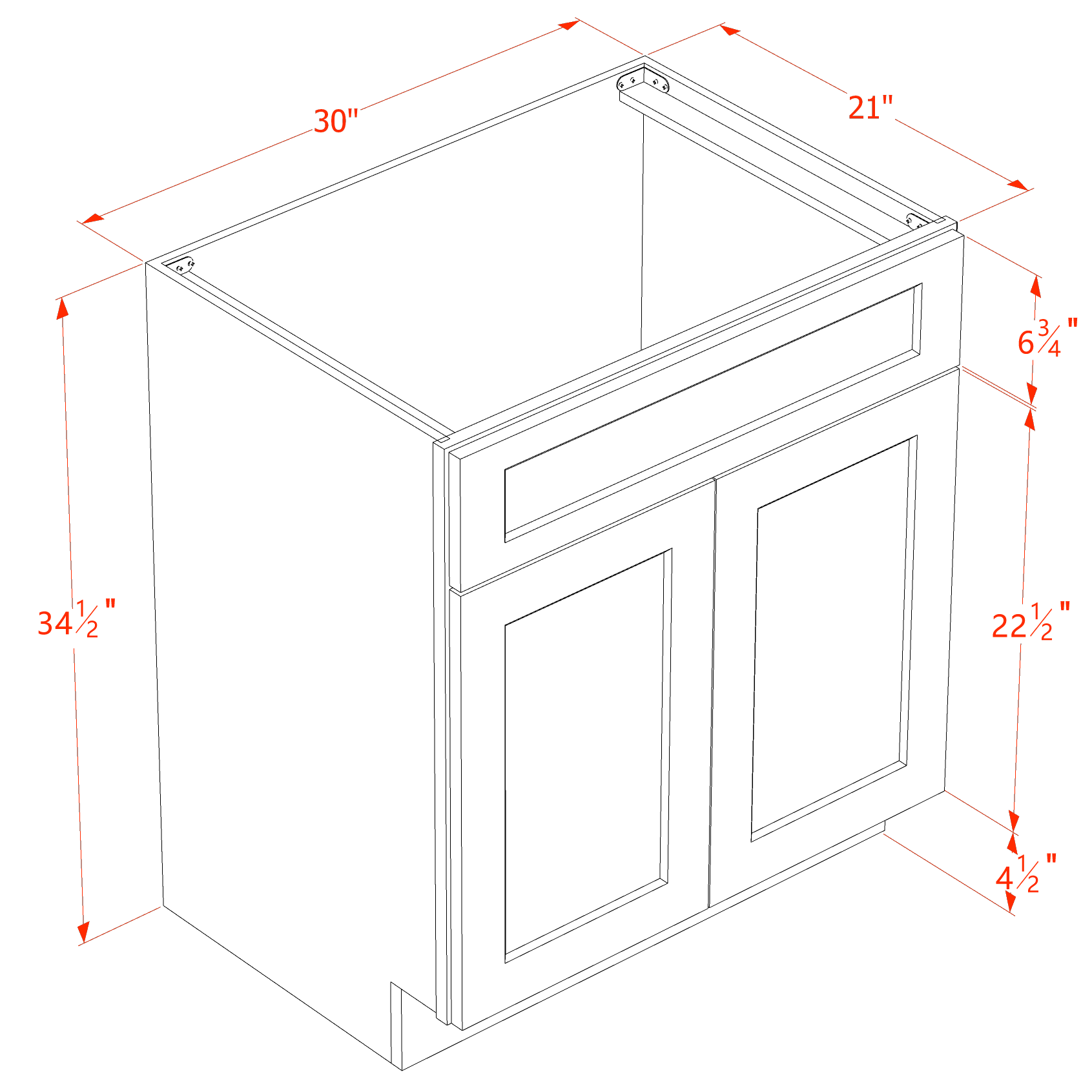 SF-VSB3021: Frost White Slim Shaker 30″W x 34-1/2″H x 21″D 2 Doors & 1 False Drawer Vanity Sink Base Cabinets