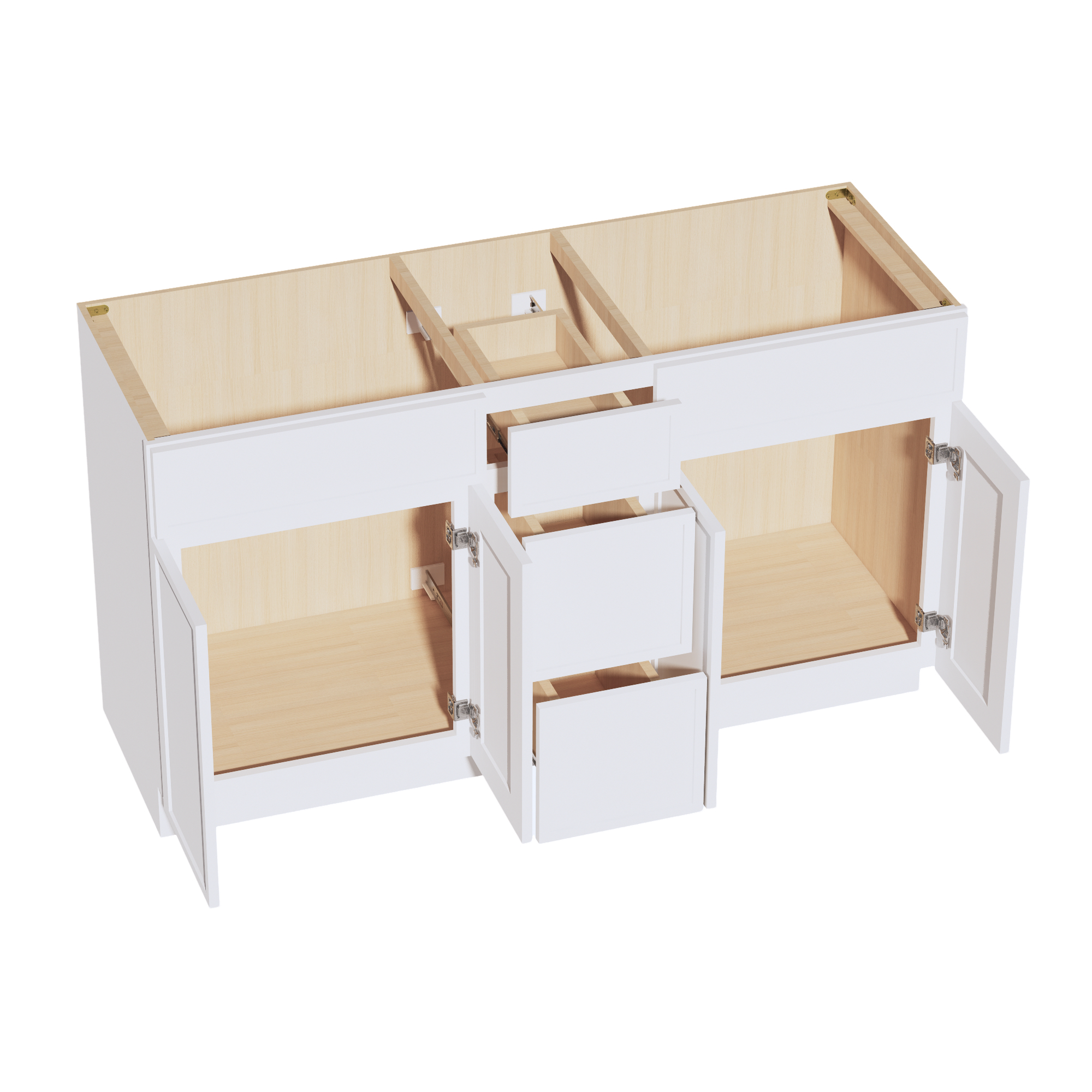 SF-VSD60DOUBLEE: Frost White Slim Shaker 60″W x 34-1/2″H x 21″D 4 Doors, 3 Drawers & 2 False Drawers Double Sink Vanity Base Combo Cabinets
