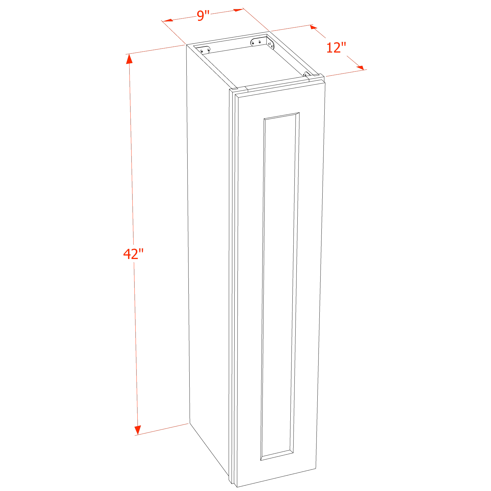 SF-W0942: Frost White Slim Shaker 09″W x 42″H 1 Door & 3 Shelves Standard Wall Cabinet