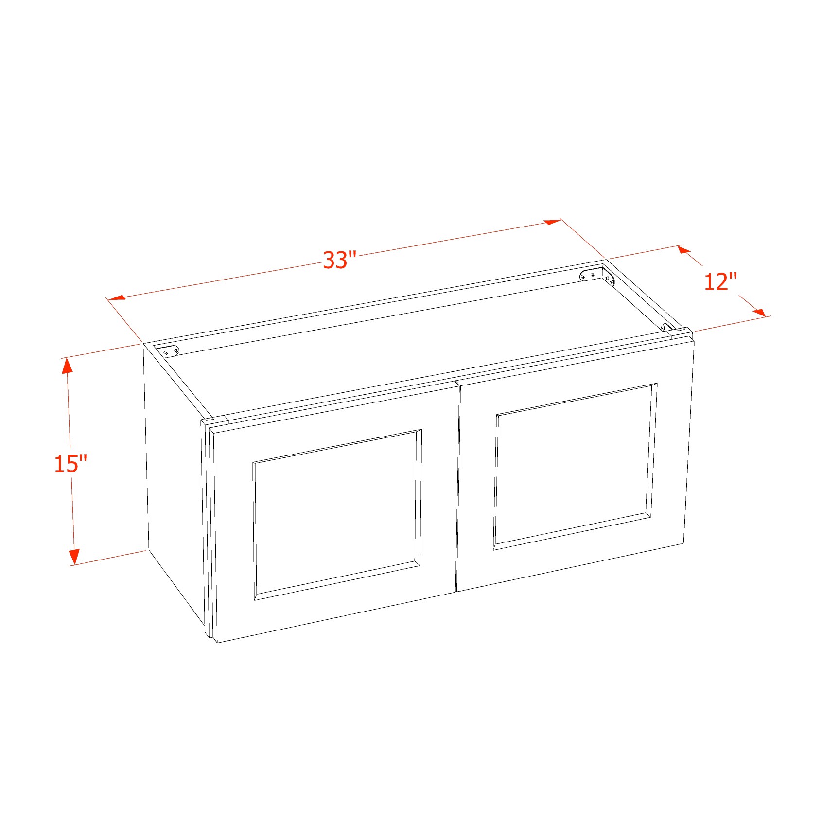 SF-W3315: Frost White Slim Shaker 33″W x 15″H 2 Doors Standard Wall Bridge Cabinet