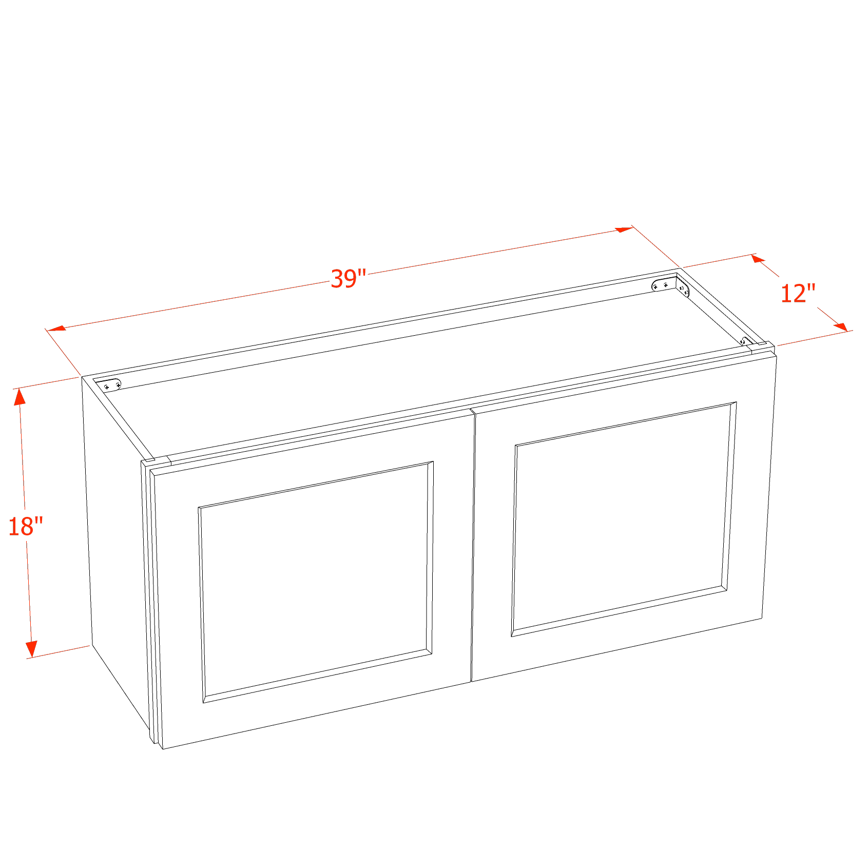 SF-W3918: Frost White Slim Shaker 39″W x 18″H 2 Doors Standard Wall Bridge Cabinet