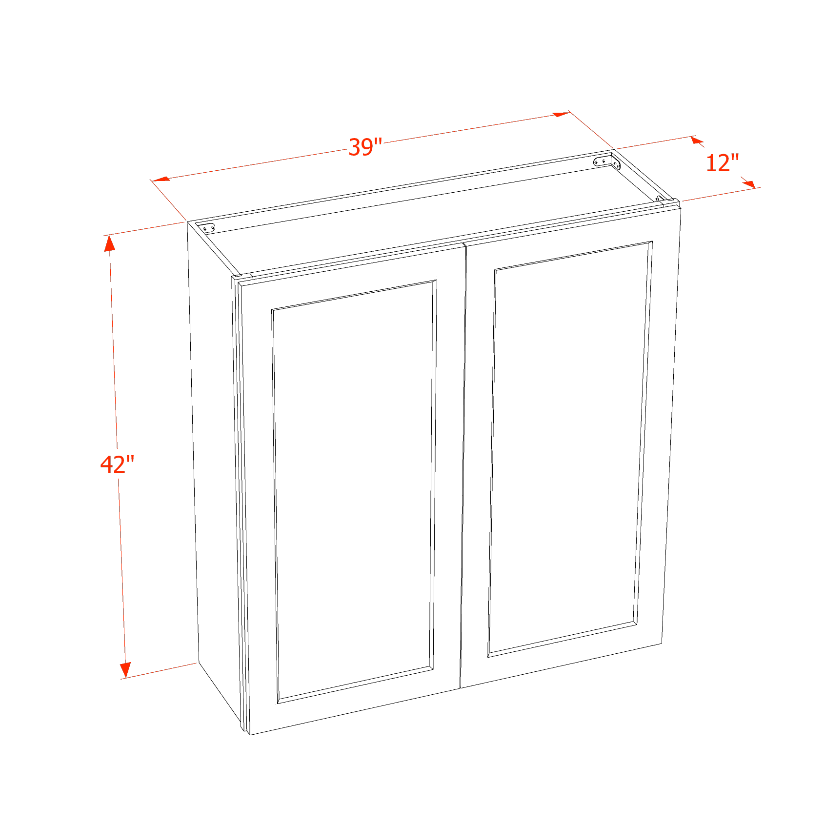 SF-W3942: Frost White Slim Shaker 39″W x 42″H 2 Doors & 3 Shelves Standard Wall Cabinet