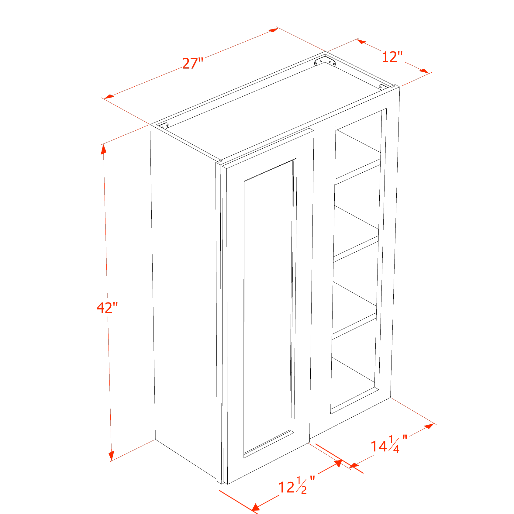 27″W x 42″H x 12″D