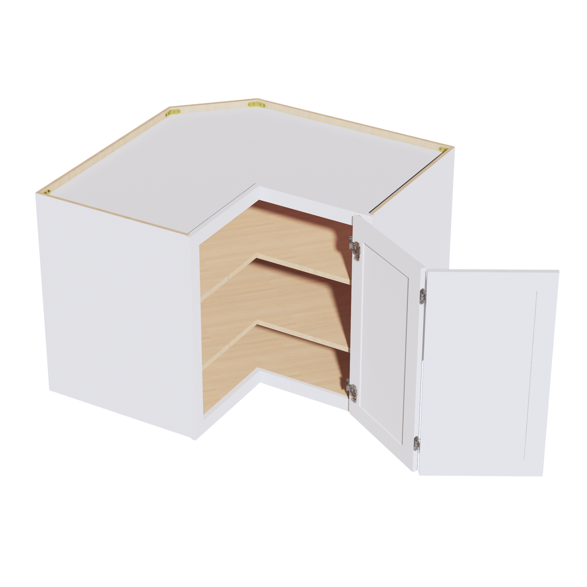 SF-WPC2430: Frost White Slim Shaker 24″W x 30″H 1 Door & 2 Shelves Pie Cut Wall Corner Cabinet