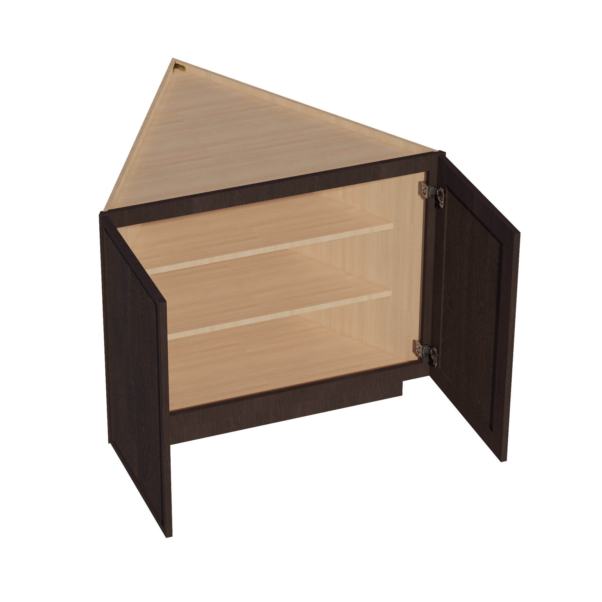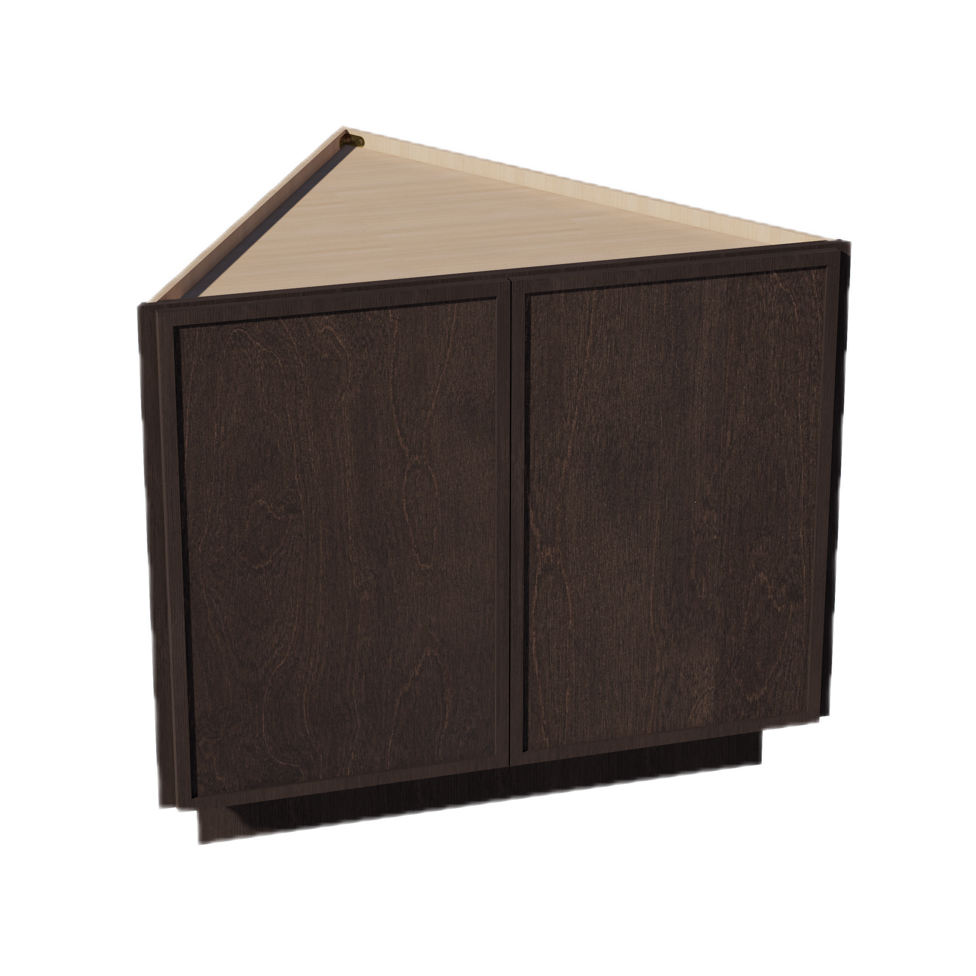 SM-BEC24: Mocha Brown Slim Shaker 24″ 2 Full Height Door Angled End Base Cabinets