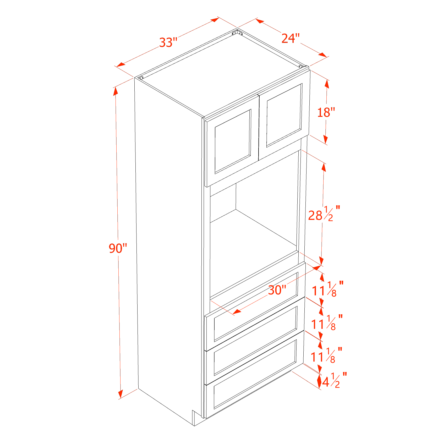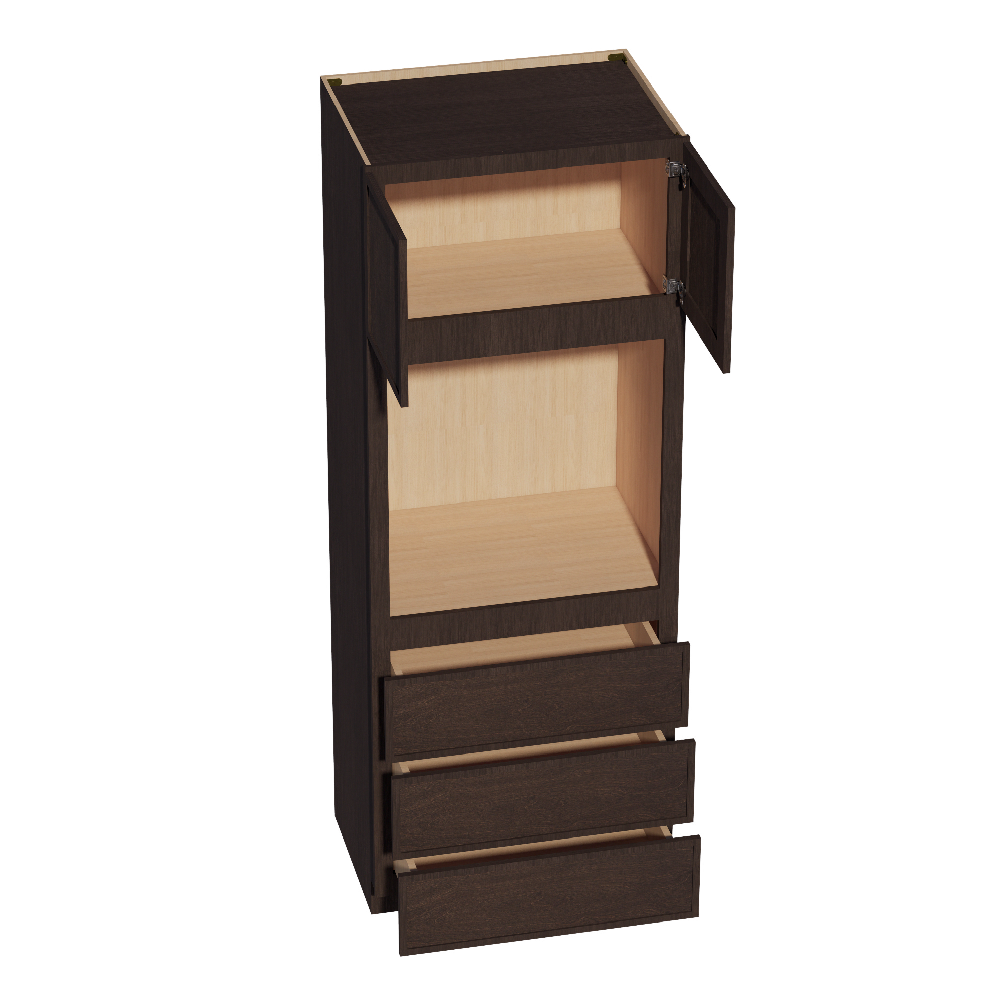 SM-OC3390: Mocha Brown Slim Shaker 33″W x 90″H x 24″D 2 Doors & 3 Drawers Tall Oven Shelf Cabinets