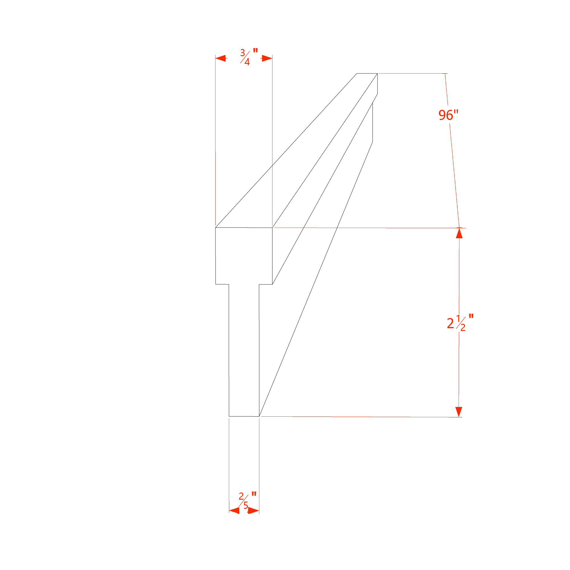 96″W x 2-1/2″H x 3/4″D