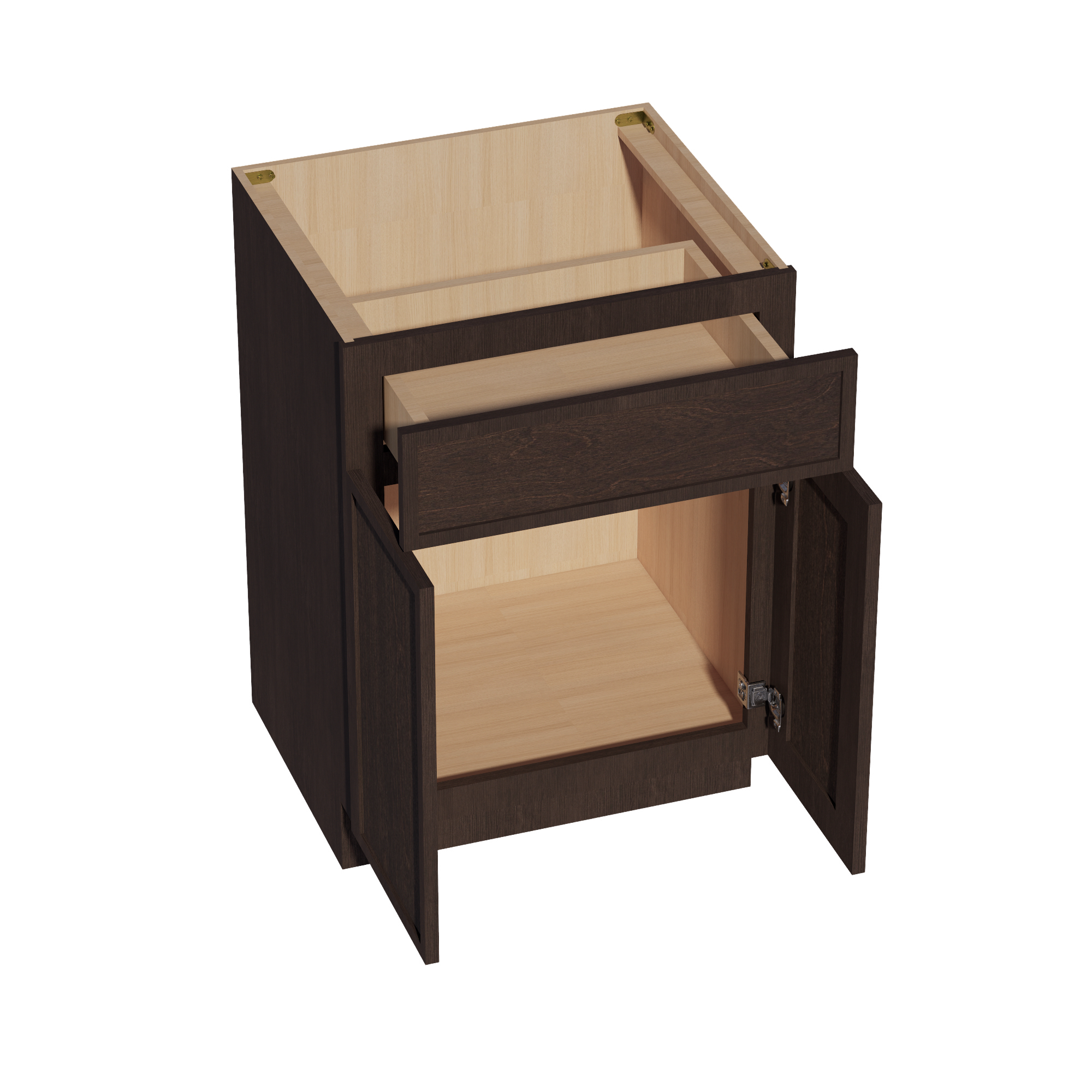 SM-VB2421: Mocha Brown Slim Shaker 24″W x 34-1/2″H x 21″D 2 Doors & 1 Drawer Double Door Vanity Base Cabinets