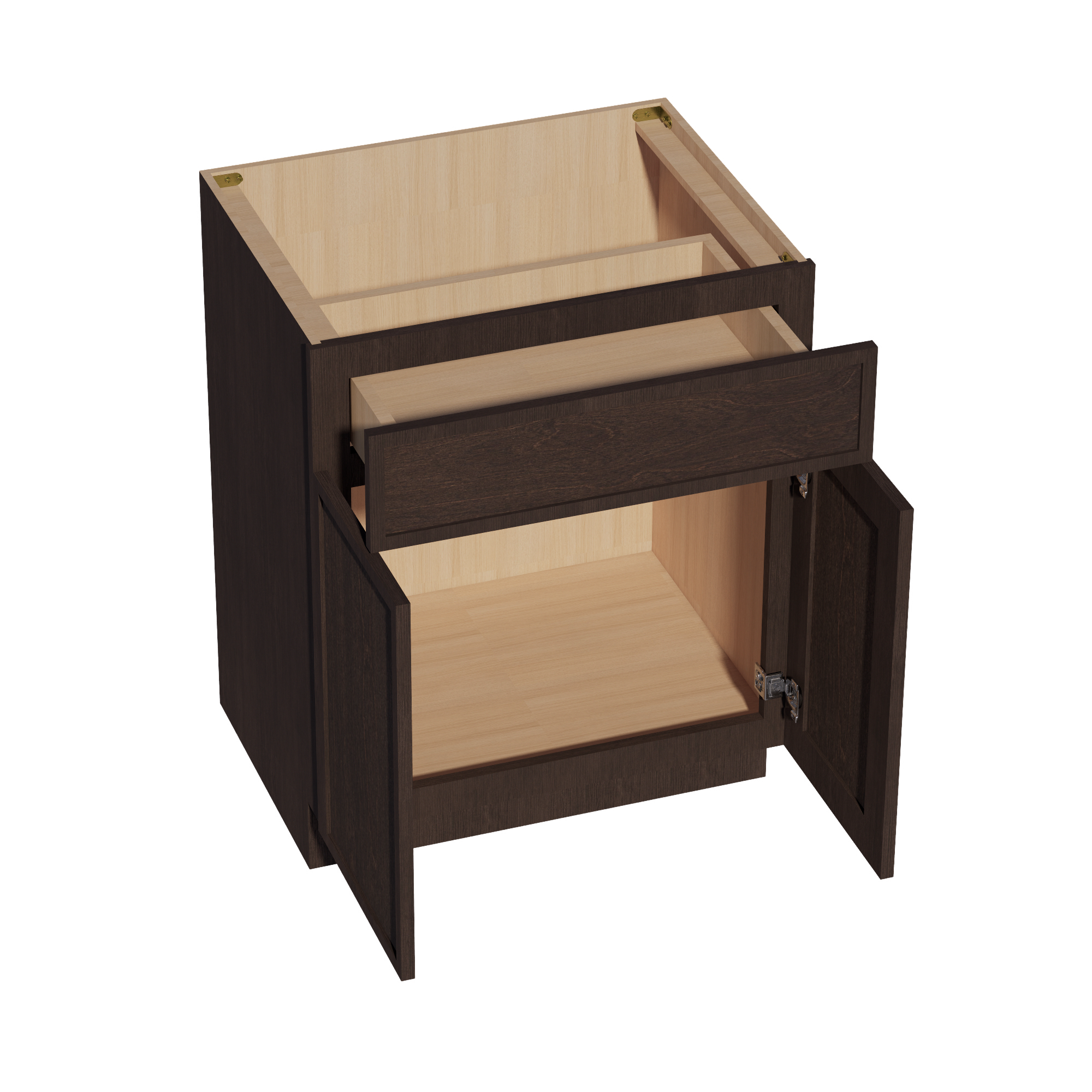 SM-VB2721: Mocha Brown Slim Shaker 27″W x 34-1/2″H x 21″D 2 Doors & 1 Drawer Double Door Vanity Base Cabinets