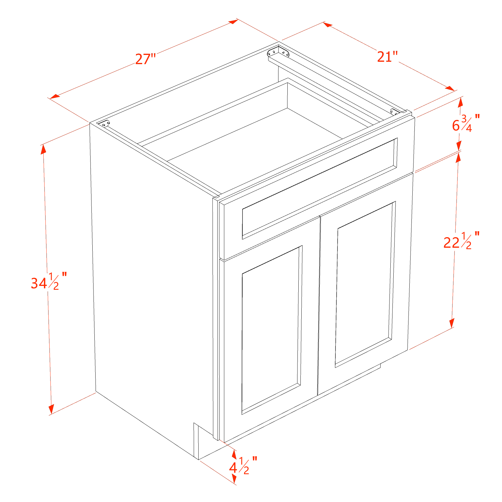 27″W x 34-1/2″H x 21″D