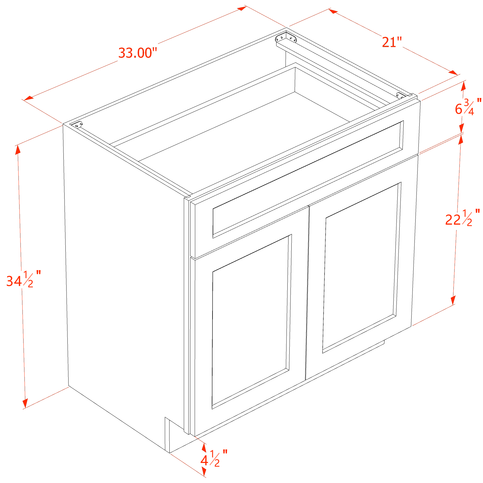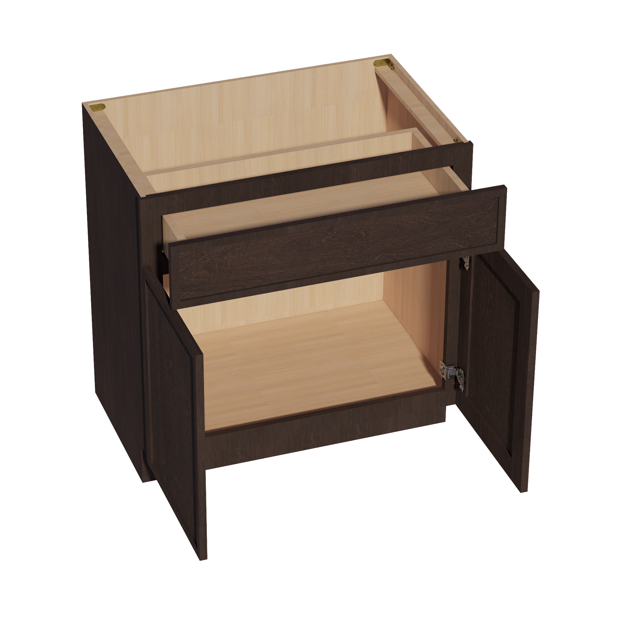 SM-VB3321: Mocha Brown Slim Shaker 33″W x 34-1/2″H x 21″D 2 Doors & 1 Drawer Double Door Vanity Base Cabinets