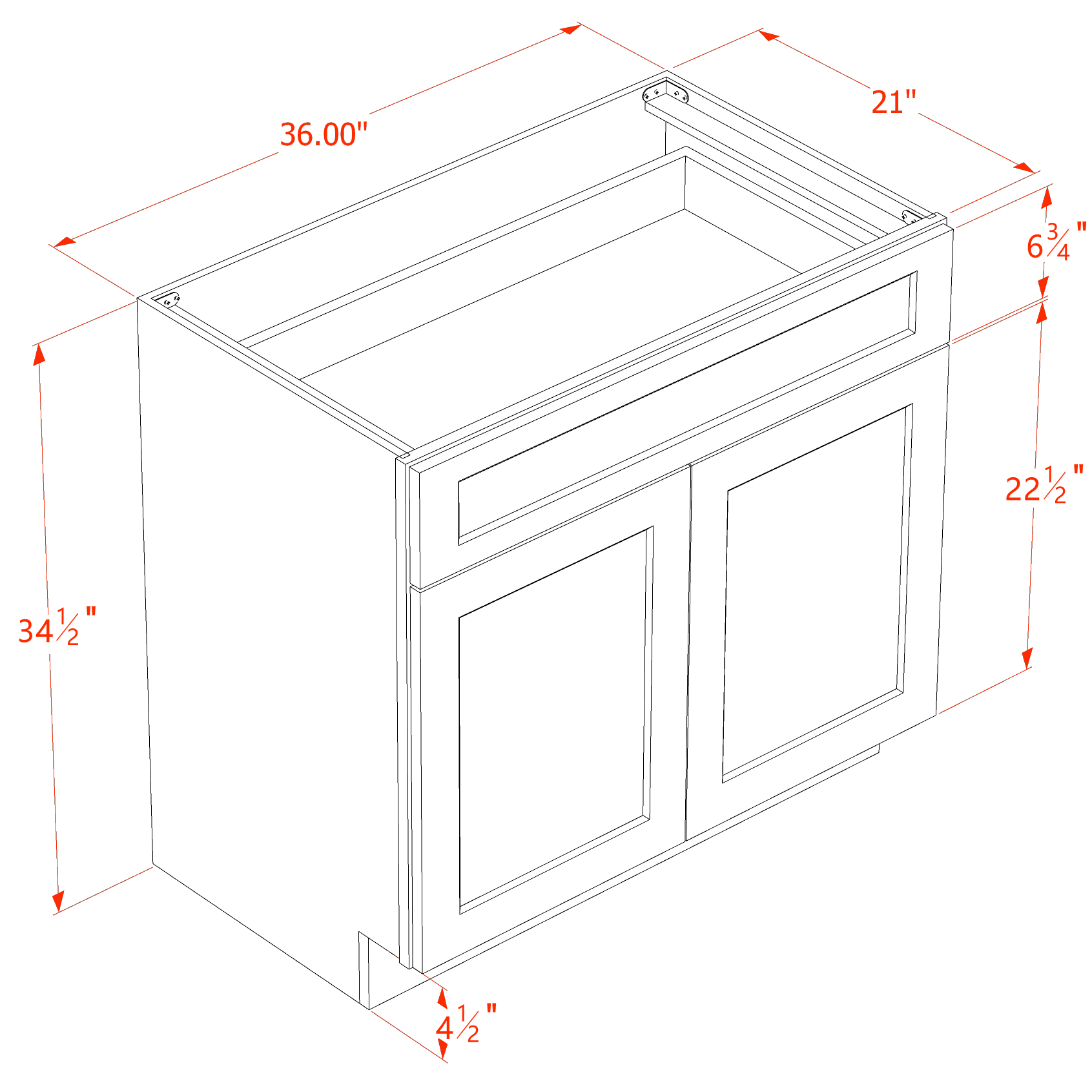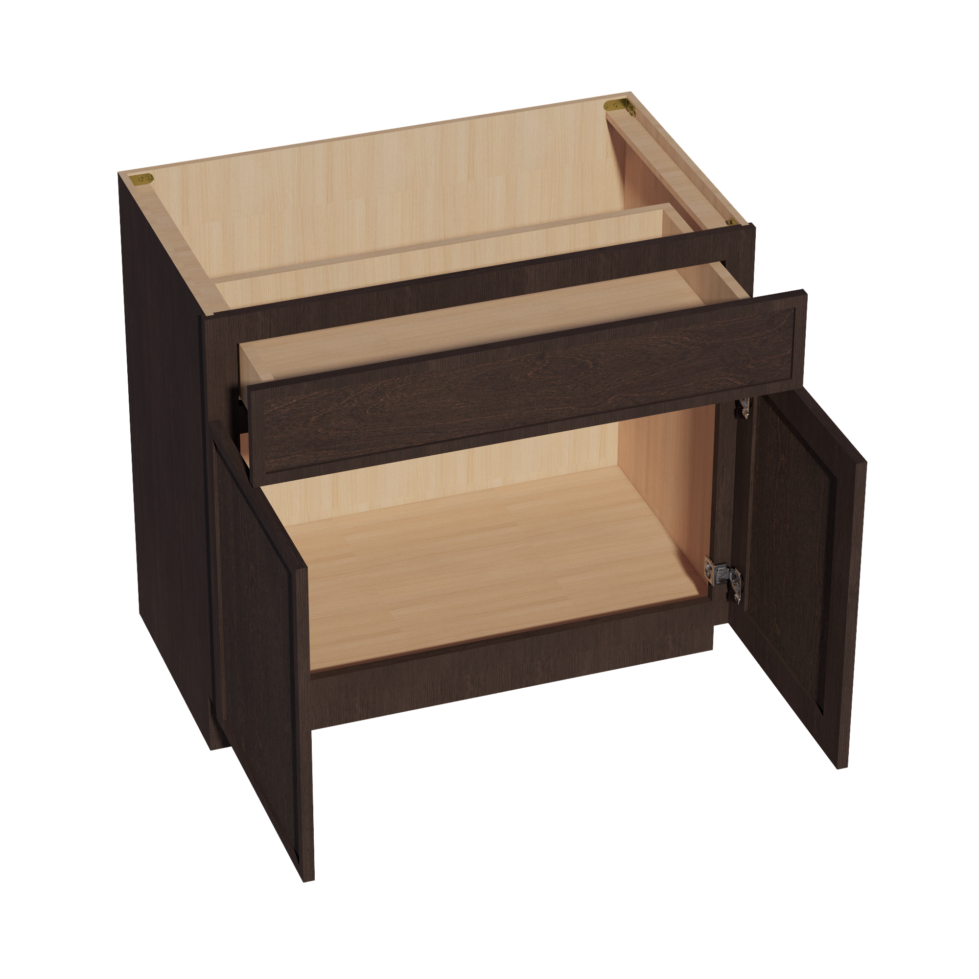 SM-VB3621: Mocha Brown Slim Shaker 36″W x 34-1/2″H x 21″D 2 Doors & 1 Drawer Double Door Vanity Base Cabinets