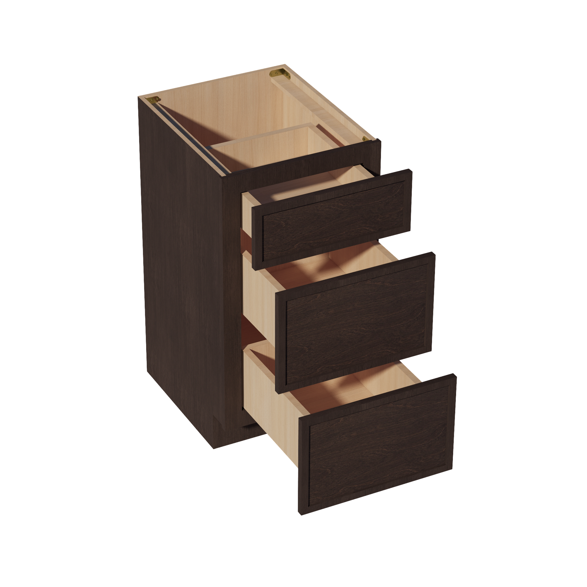 SM-VDB1821: Mocha Brown Slim Shaker 18″W x 34-1/2″H x 21″D 3 Drawers Vanity Base Cabinets