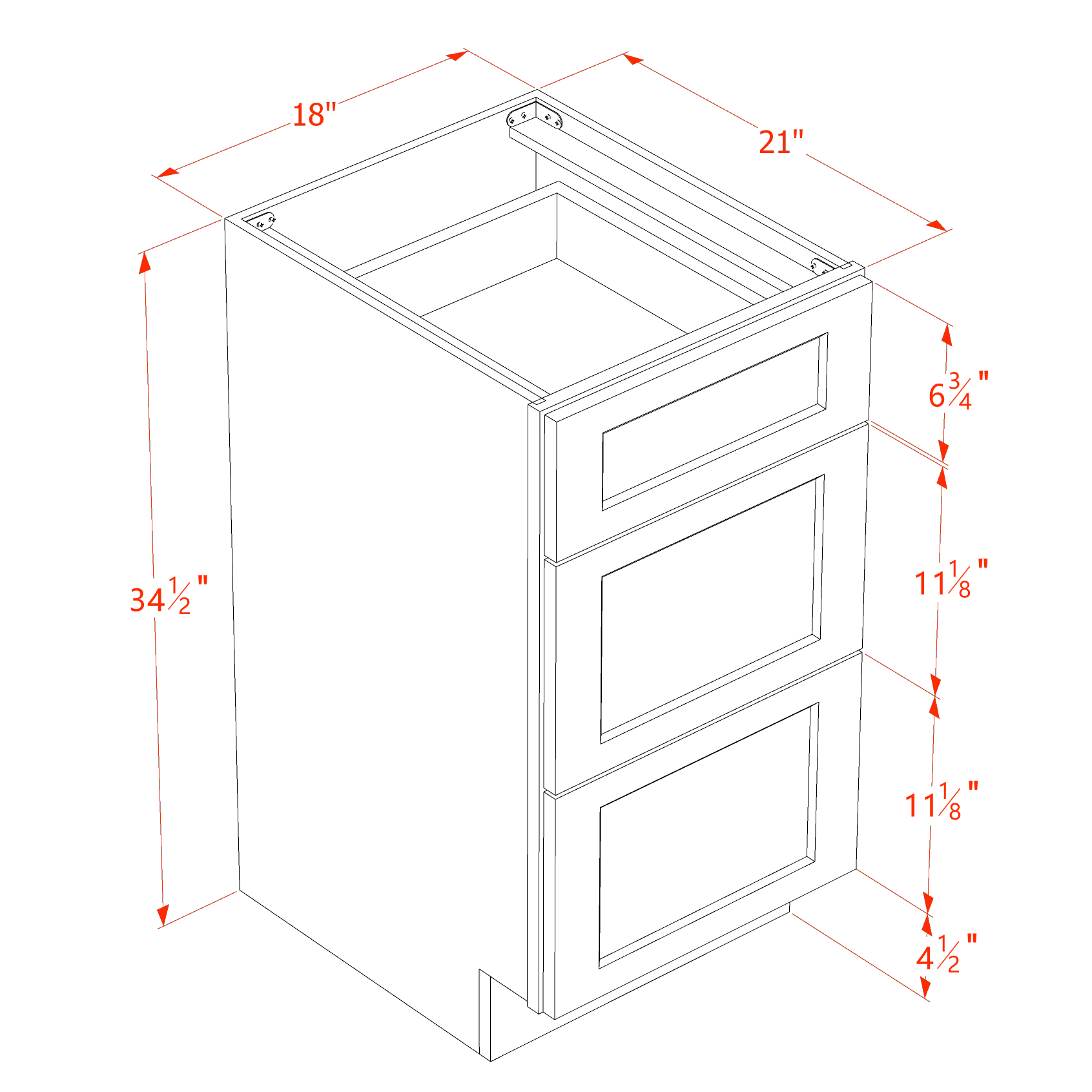 18″W x 34-1/2″H x 21″D