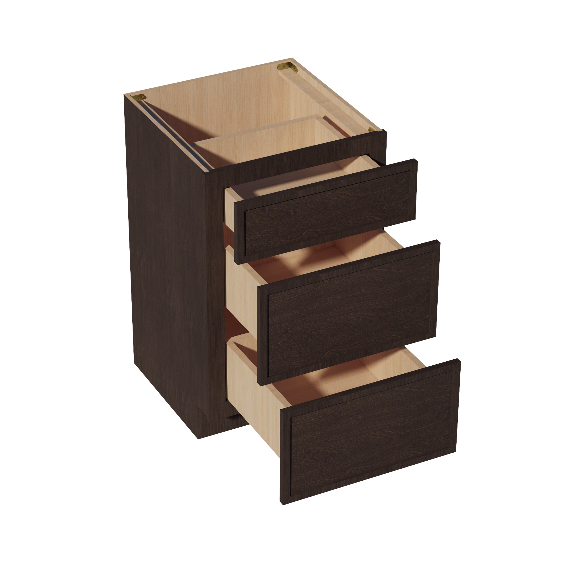 SM-VDB2121: Mocha Brown Slim Shaker 21″W x 34-1/2″H x 21″D 3 Drawers Vanity Base Cabinets
