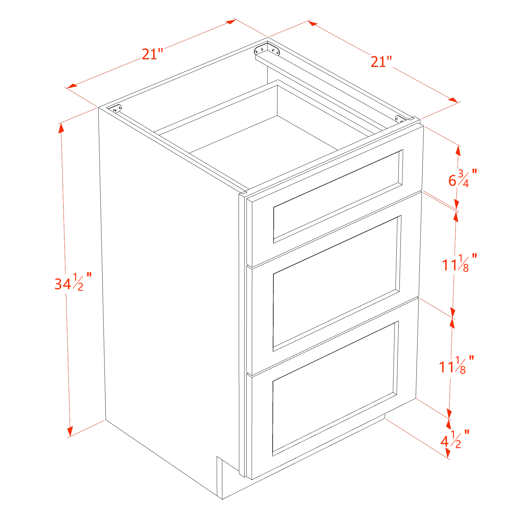 21″W x 34-1/2″H x 21″D