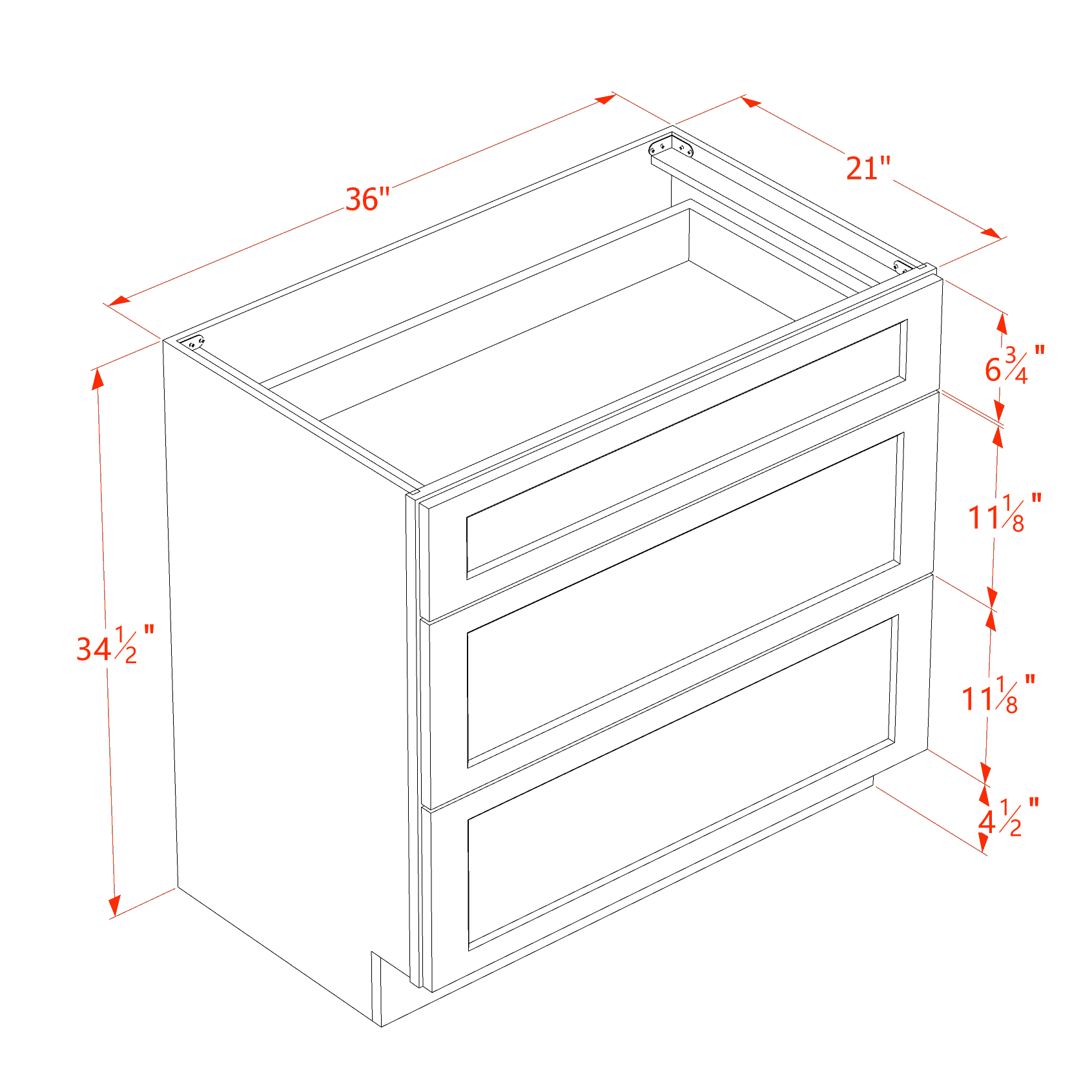 SM-VDB3621: Mocha Brown Slim Shaker 36″W x 34-1/2″H x 21″D 3 Drawers Vanity Base Cabinets
