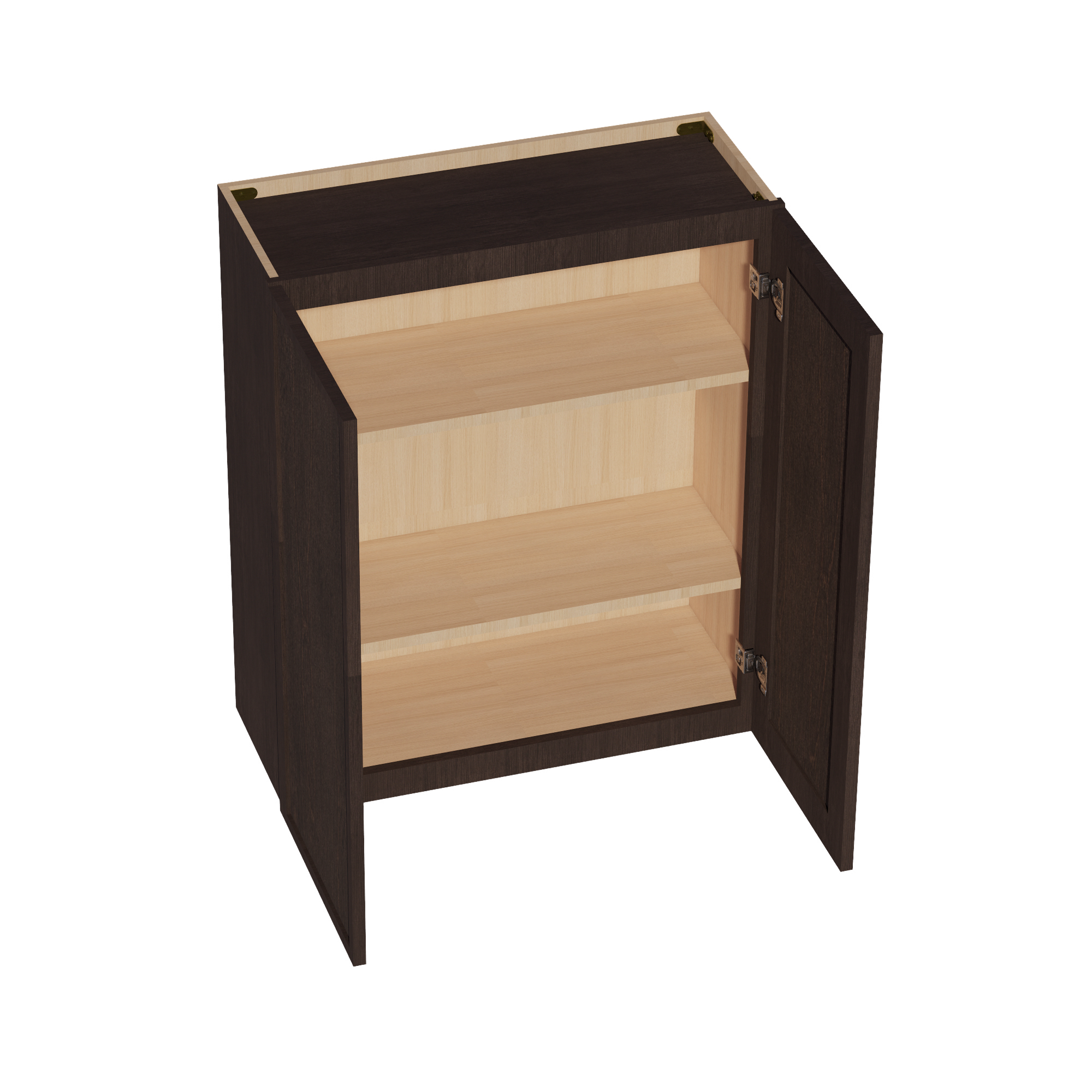 SM-W3036: Mocha Brown Slim Shaker 30″W x 36″H 2 Doors & 2 Shelves Standard Wall Cabinet