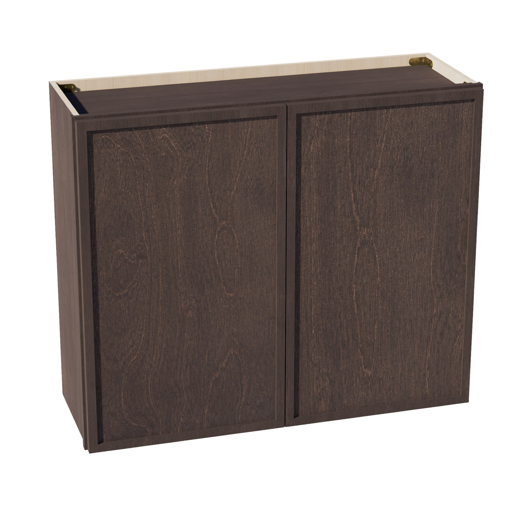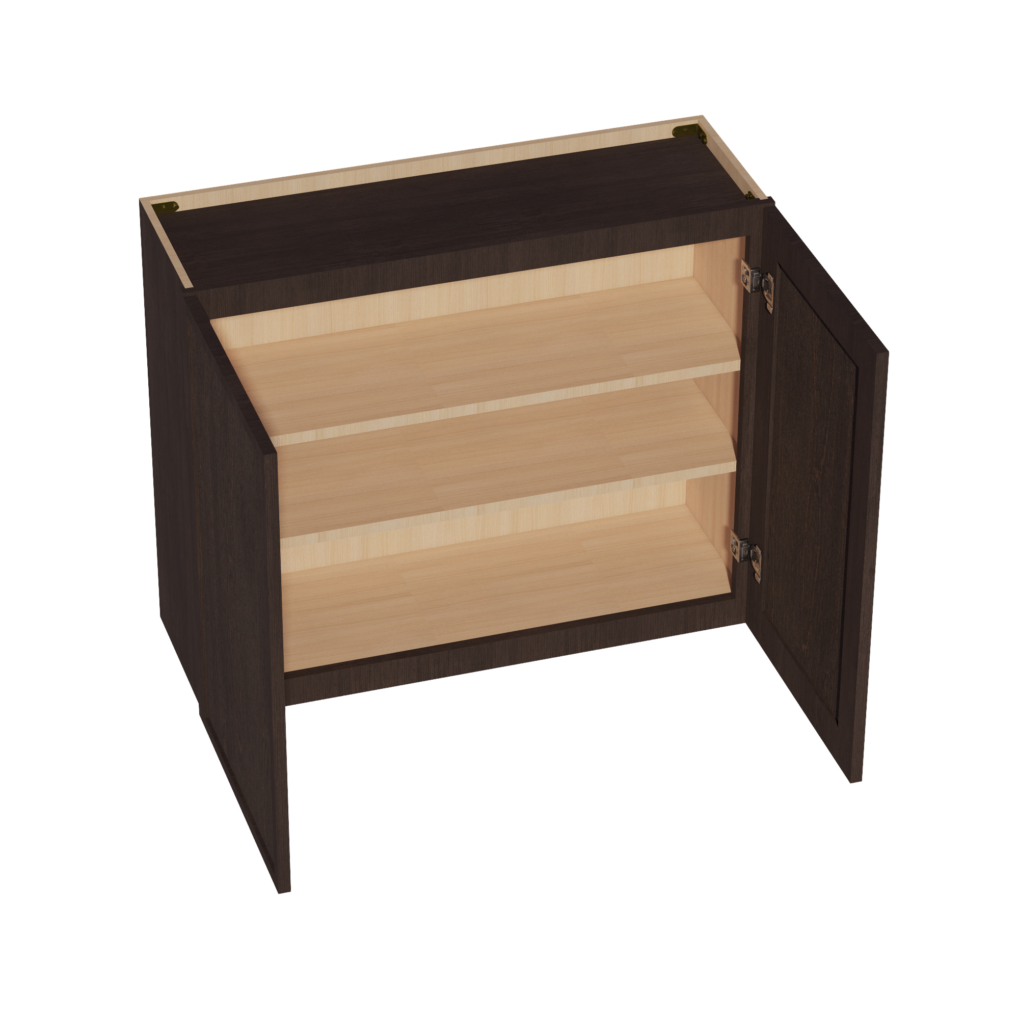 SM-W3630: Mocha Brown Slim Shaker 36″W x 30″H 2 Doors & 2 Shelves Standard Wall Cabinet