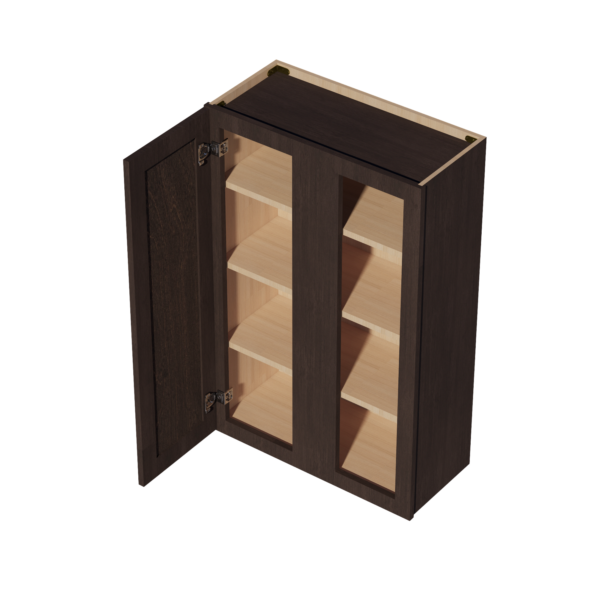 SM-WBC2742: Mocha Brown Slim Shaker 27″W x 42″H 1 Door & 2 Shelves Wall Blind Corner Cabinets