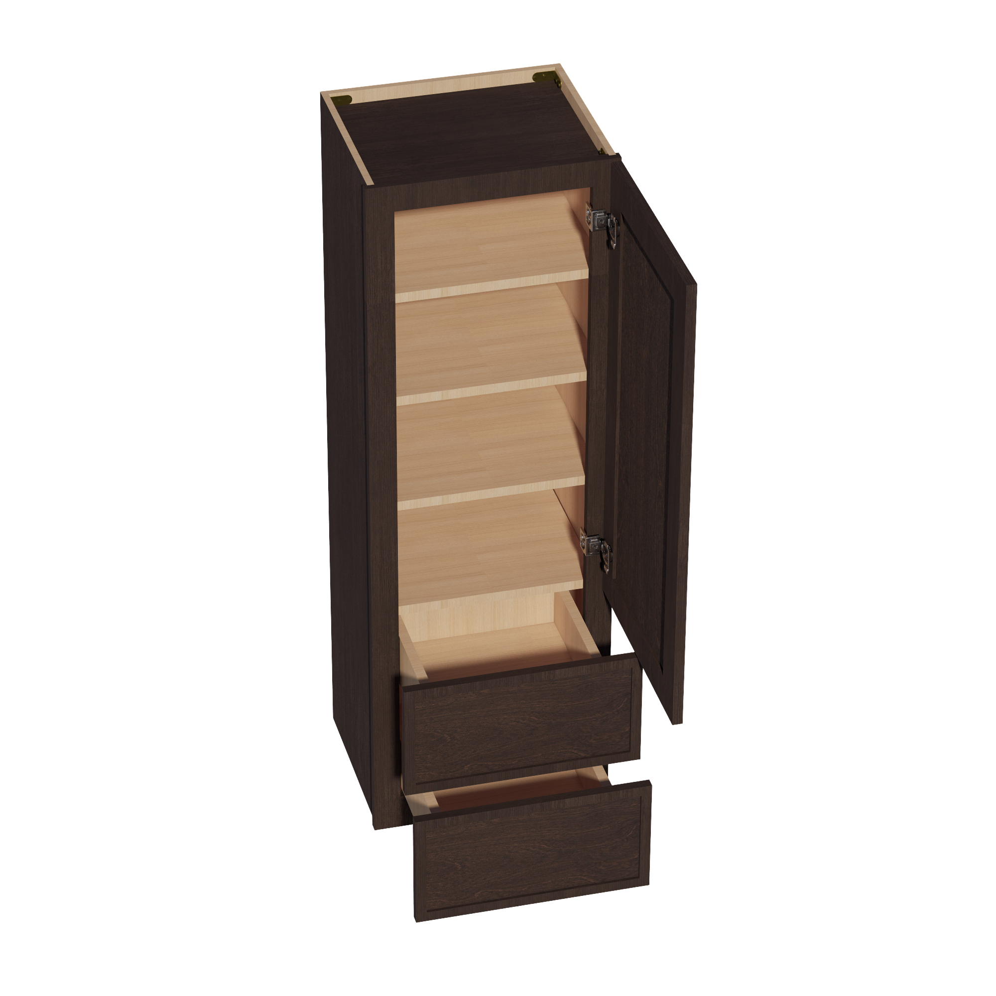 SM-WD1854: Mocha Brown Slim Shaker 18″W x 54″H 1 Door & 2 Drawers Special Wall Cabinet