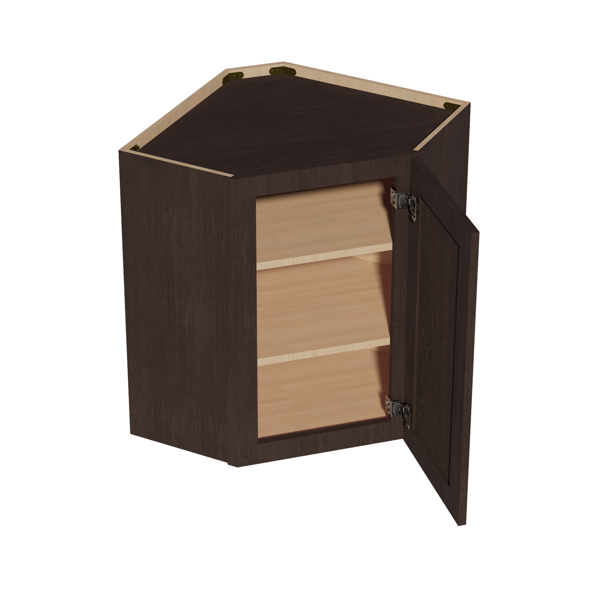 SM-WDC2430: Mocha Brown Slim Shaker 24″W x 30″H 1 Door & 2 Shelves Diagonal Wall Corner Cabinet