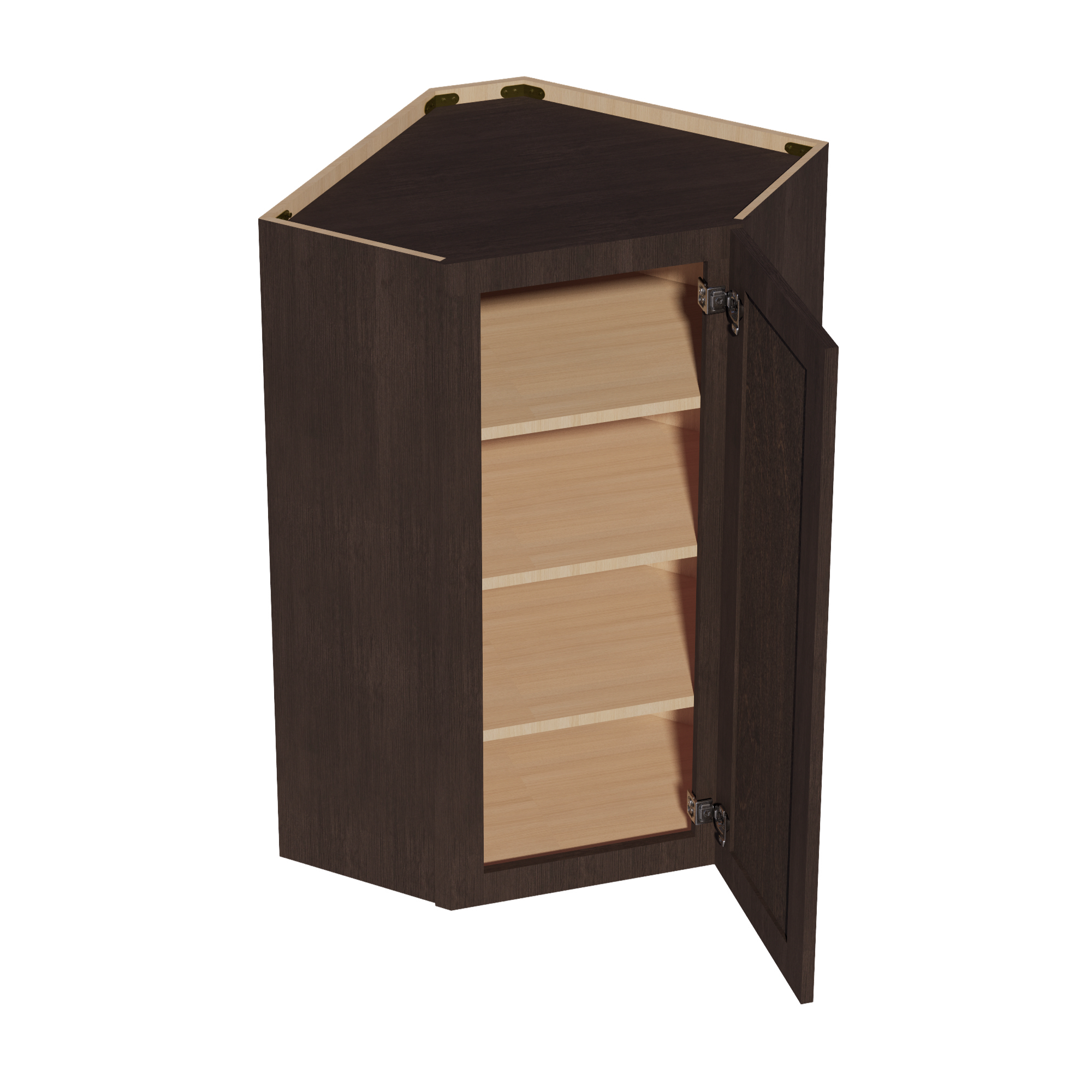 SM-WDC2442: Mocha Brown Slim Shaker 24″W x 42″H 1 Door & 2 Shelves Diagonal Wall Corner Cabinet