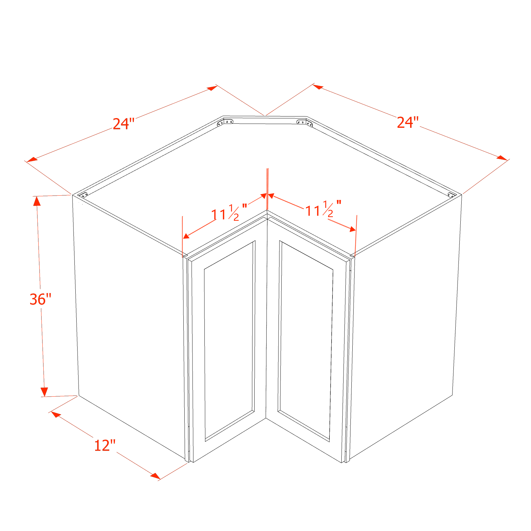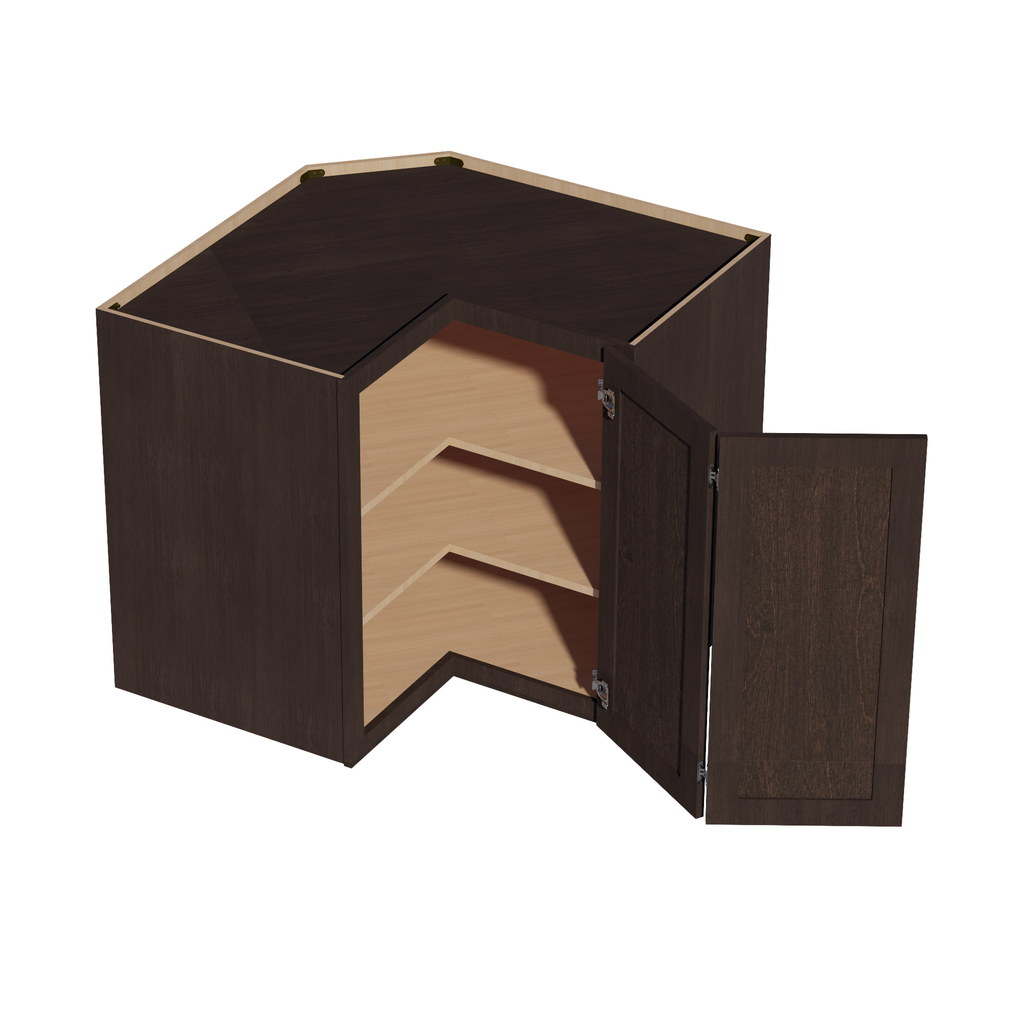 SM-WPC2436: Mocha Brown Slim Shaker 24″W x 36″H 1 Door & 2 Shelves Pie Cut Wall Corner Cabinet