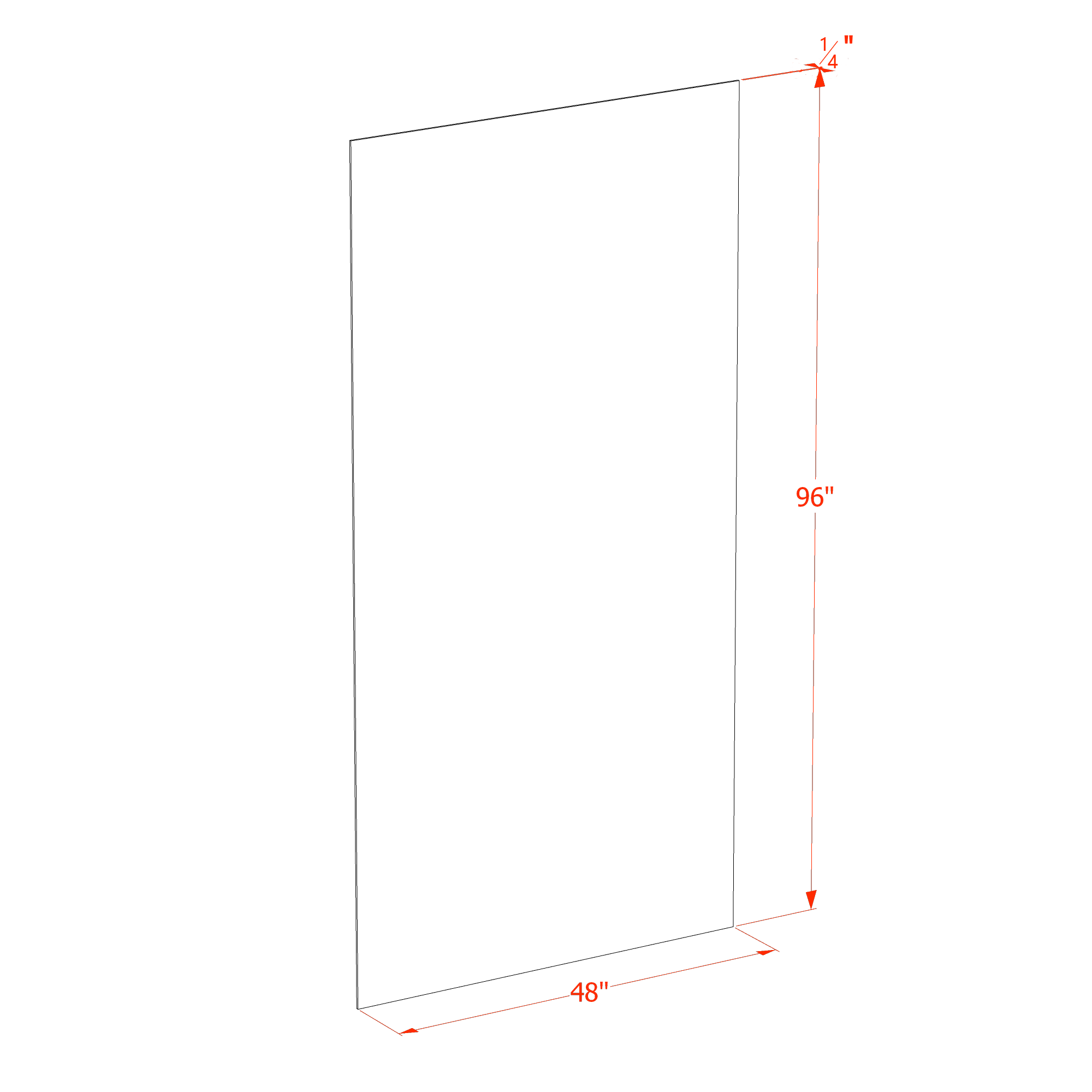 48″W x 96″H x 1/4″D