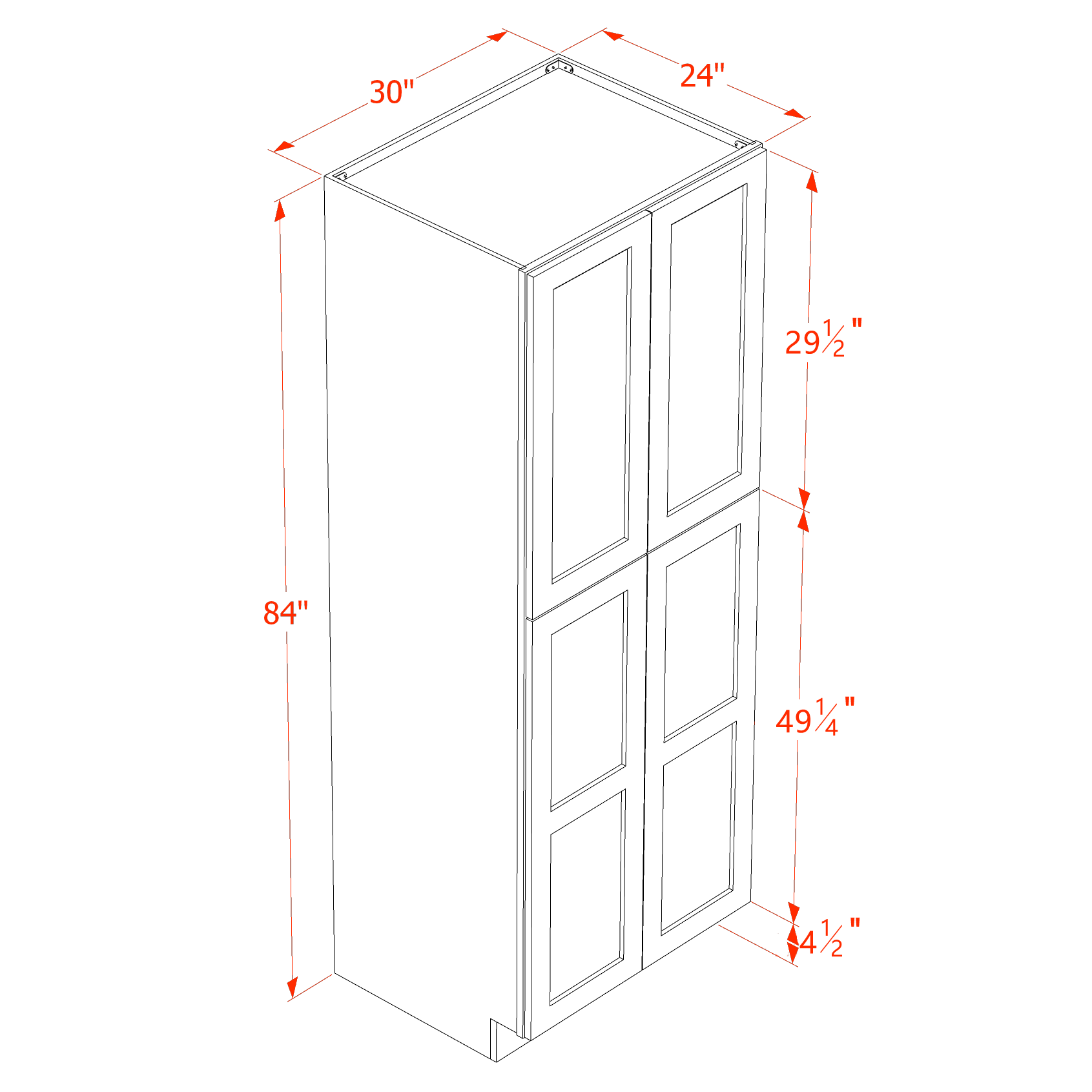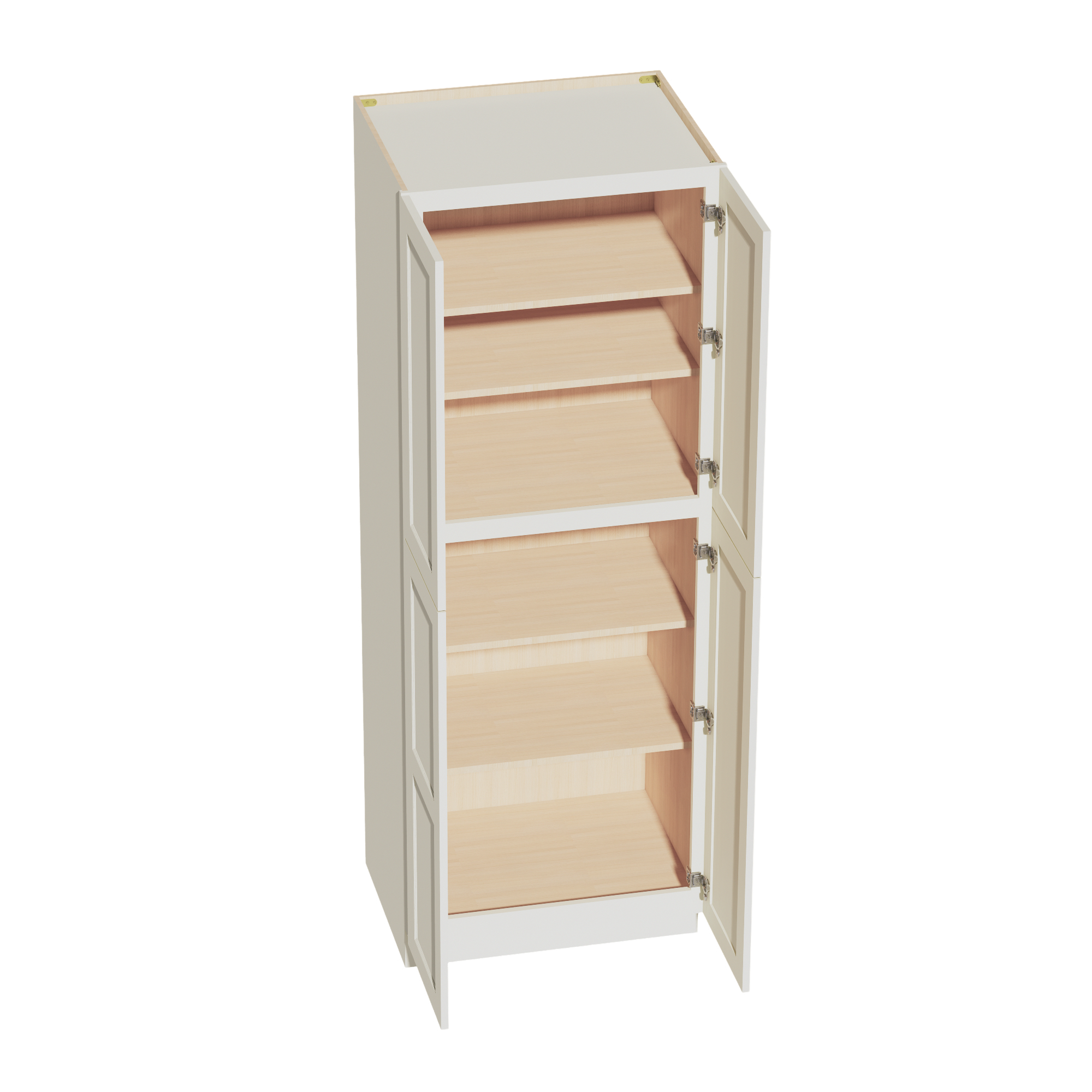 TW-TP3084: Creamy White Shaker 30″W x 84″H x 24″D 4 Door & 5 Shelves Tall Shelf Pantry Cabinets