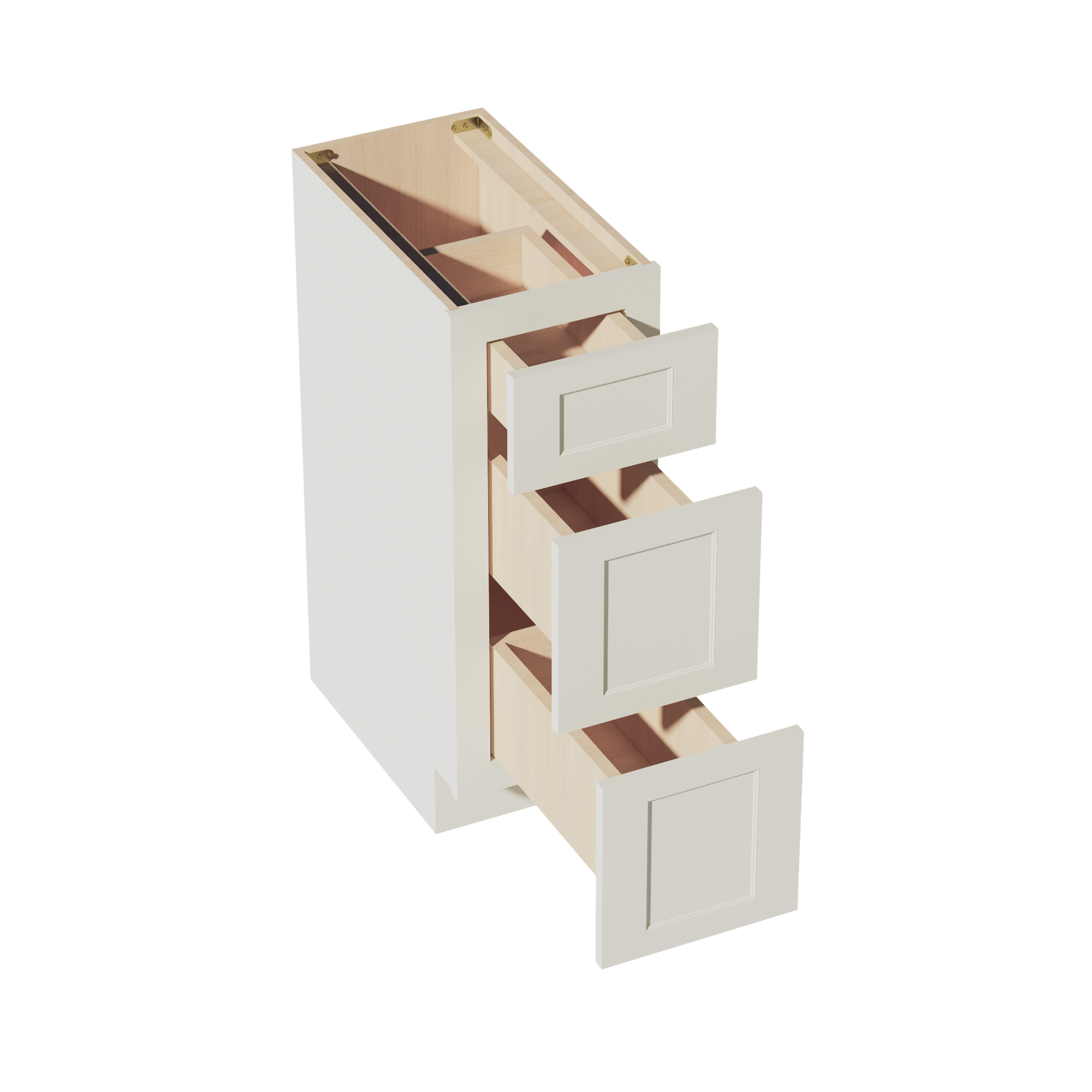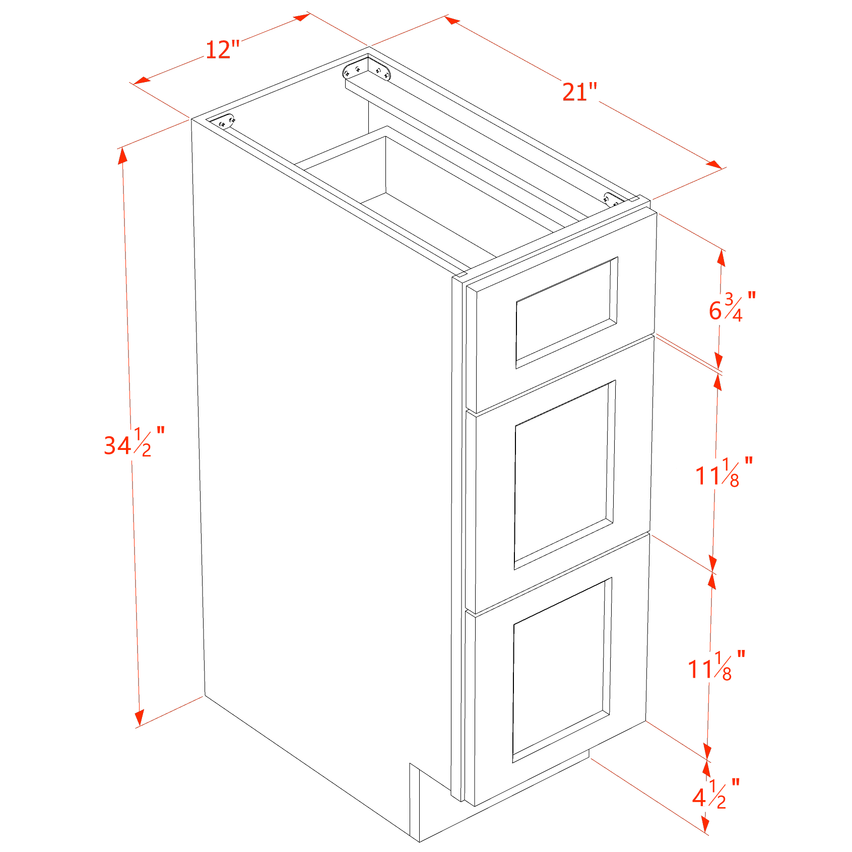 TW-VDB1221: Creamy White Shaker 12″W x 34-1/2″H x 21″D 3 Drawers Vanity Base Cabinets