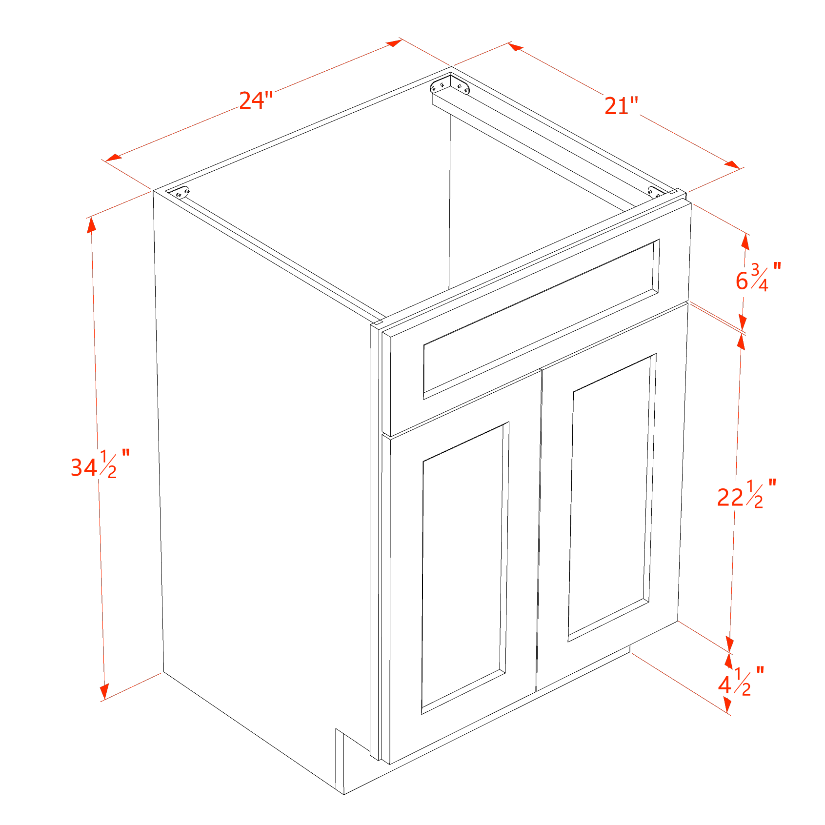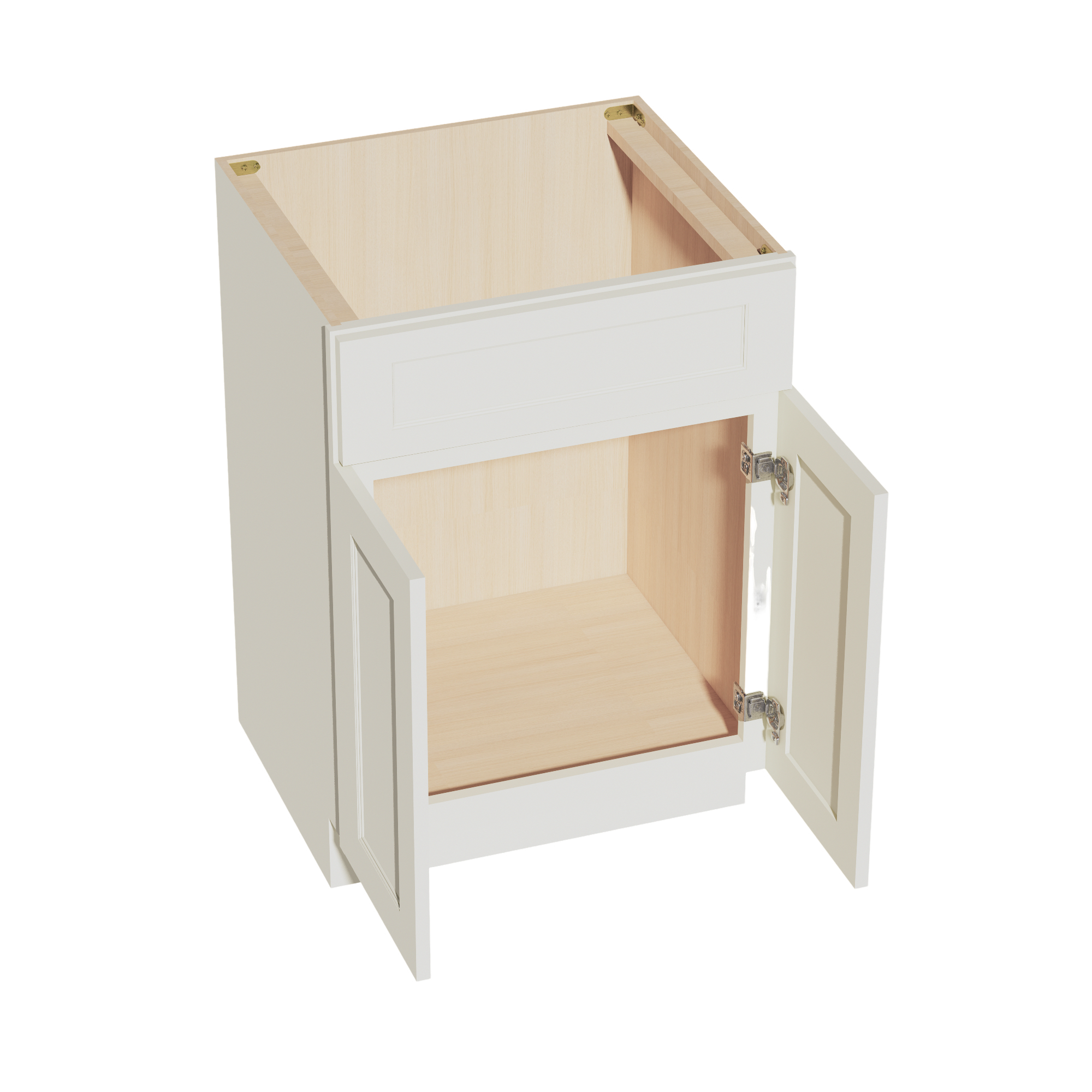 TW-VSB2421: Creamy White Shaker 24″W x 34-1/2″H x 21″D 2 Doors & 1 False Drawer Vanity Sink Base Cabinets