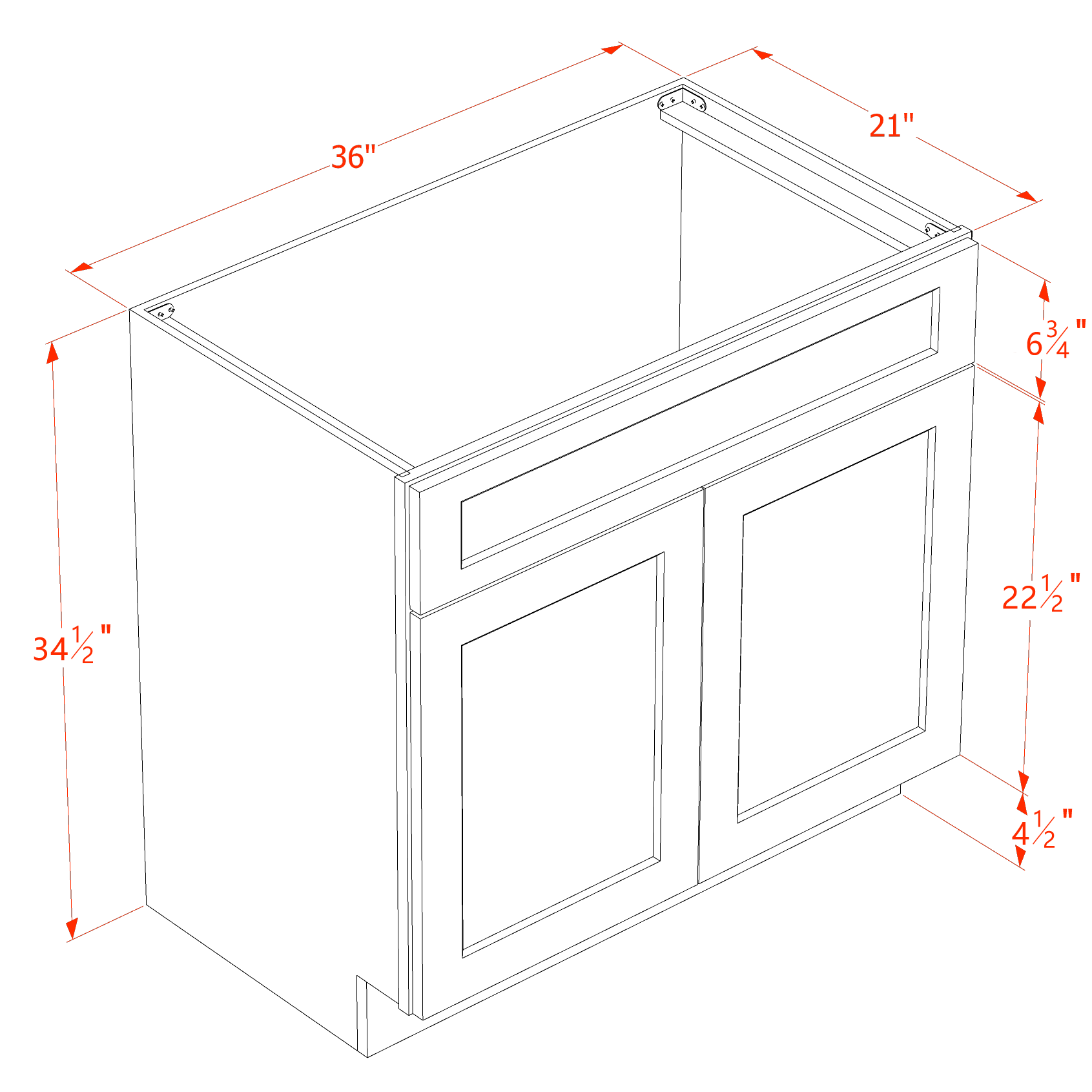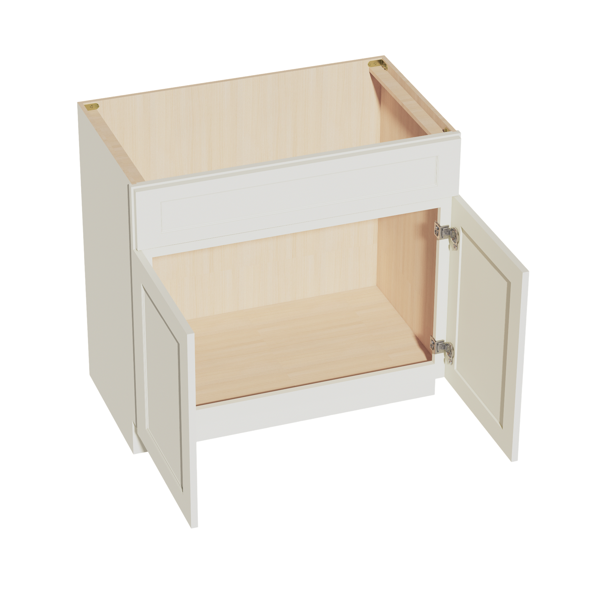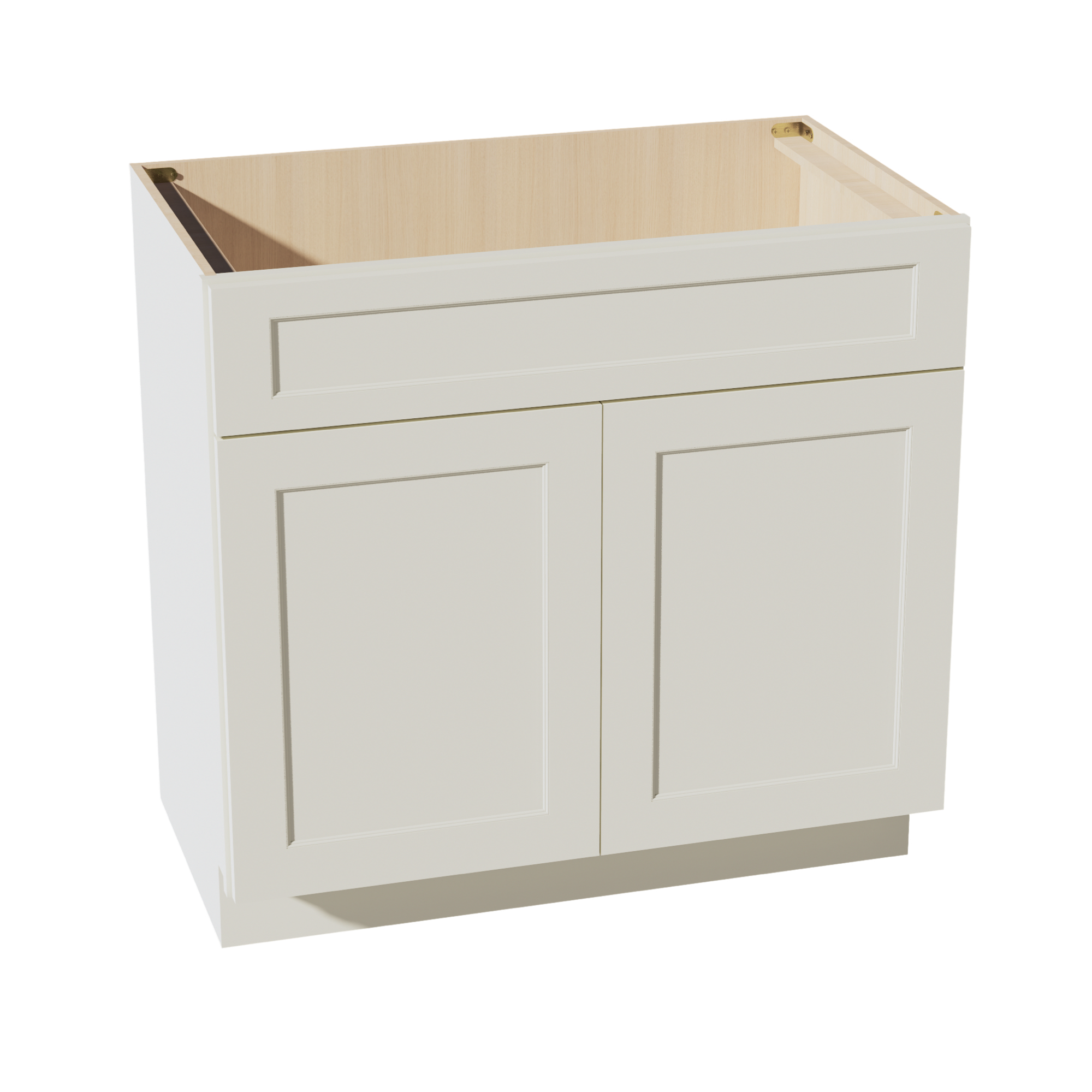 TW-VSB3621: Creamy White Shaker 36″W x 34-1/2″H x 21″D 2 Doors & 1 False Drawer Vanity Sink Base Cabinets