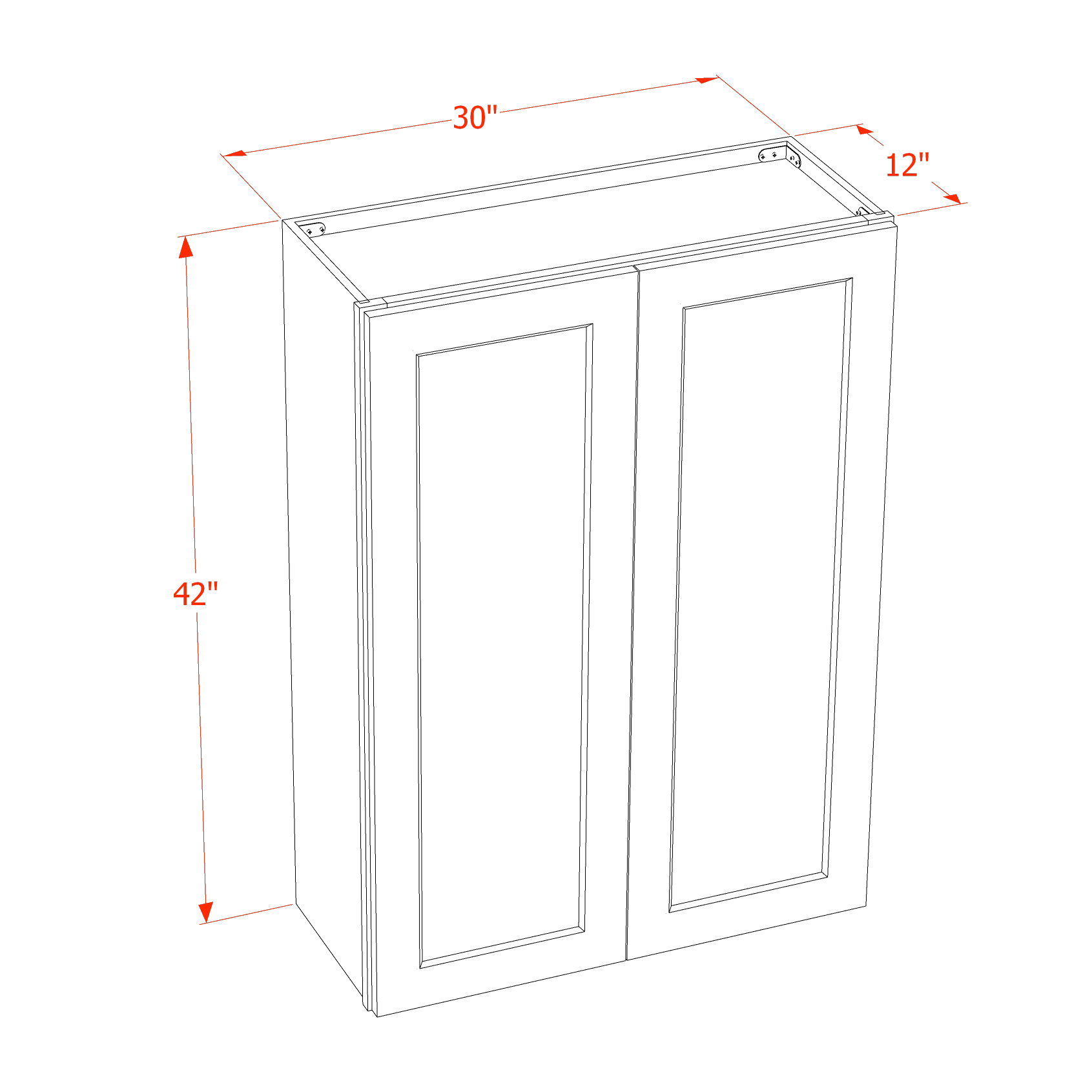 TW-W3042: Creamy White Shaker 30″W x 42″H 2 Doors & 3 Shelves Standard Wall Cabinet